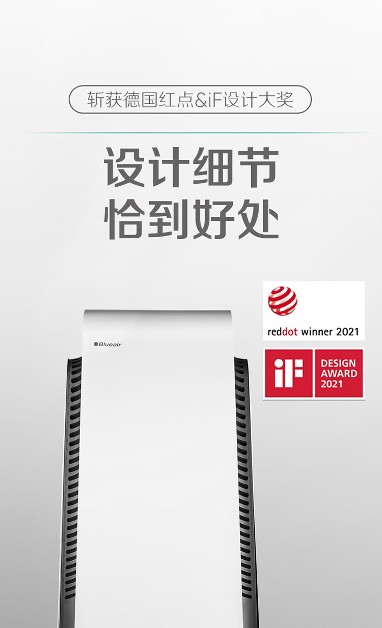 布鲁雅尔(Blueair)空气净化器除甲醛 智能菌盾7440i 除甲流病菌细菌智能数显除二手烟雾霾 钢铁大白