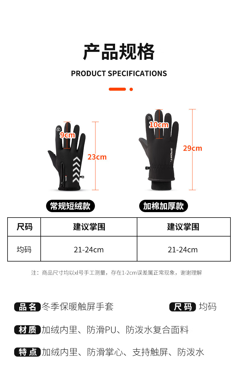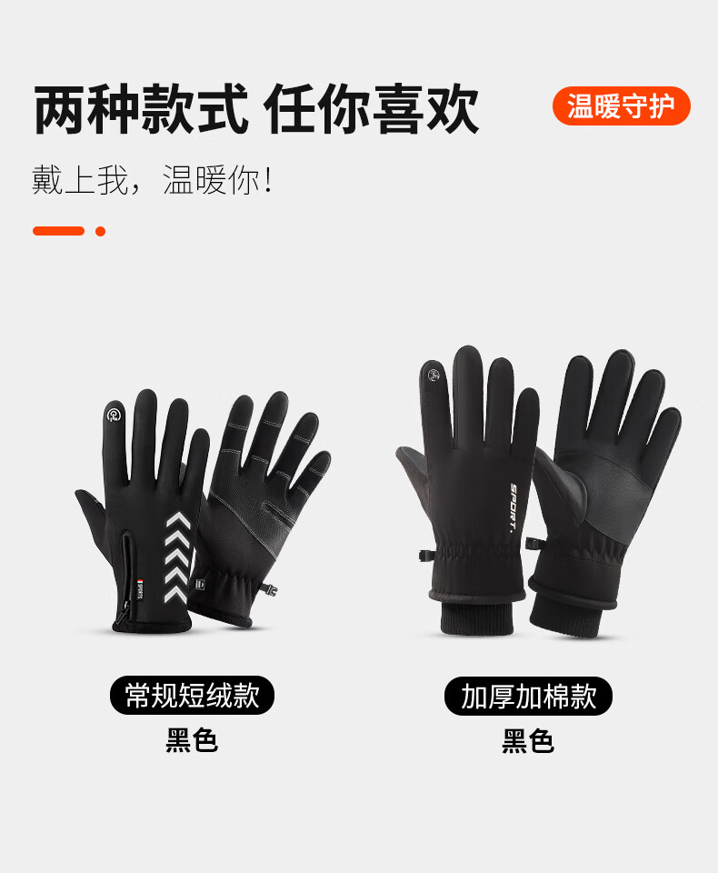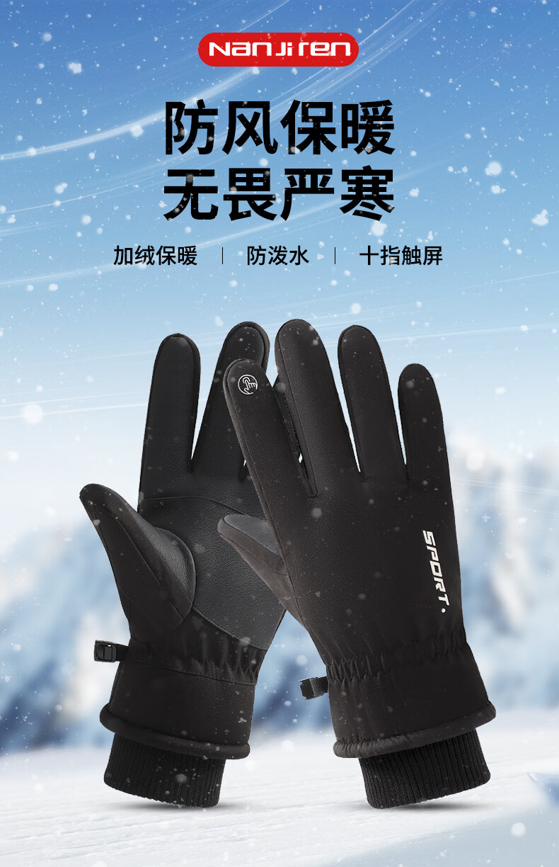 南极人骑行手套男冬季户外保暖骑车电动摩托车加厚加绒运动装备防寒防风触屏男士滑雪手套N2E0X050511 黑色