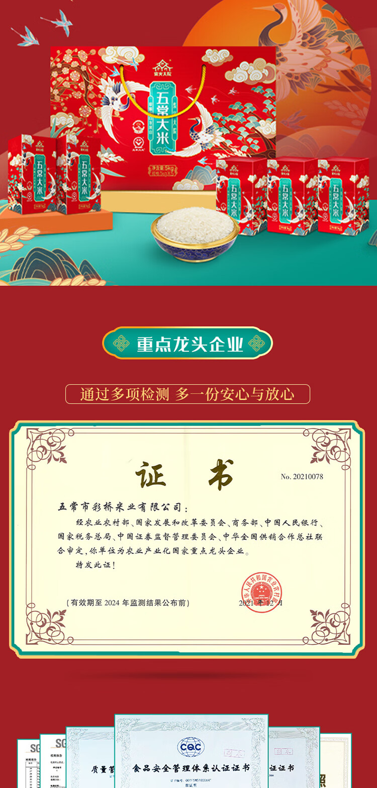 柴火大院 五常大米礼盒 5kg(东北大米 年节礼盒 公司团购 可定制 )