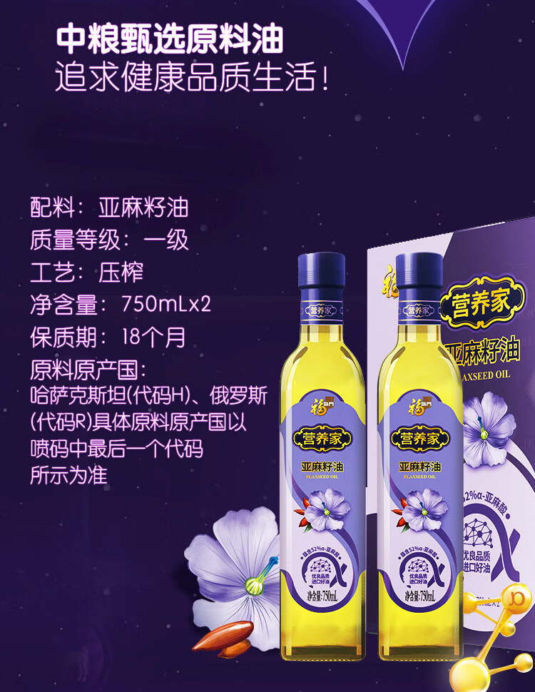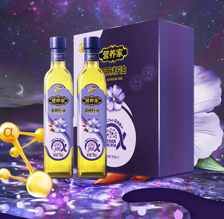 营养家 食用油 亚麻籽油(礼盒装)750ml*2 十二星座瓶 中粮福临门出品