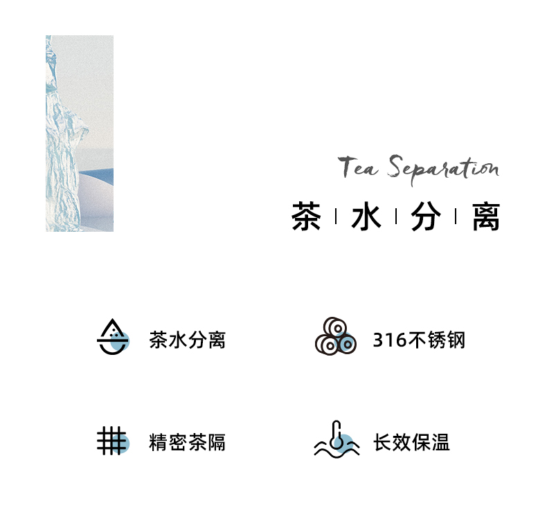 TOMIC特美刻乐茶杯茶水分离保温杯316不锈钢大容量茶杯办公室水杯子