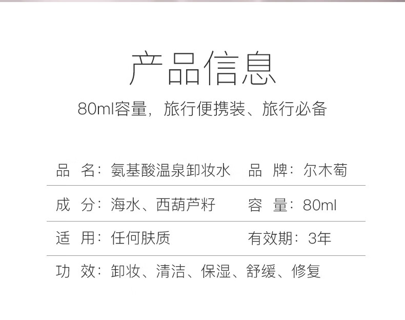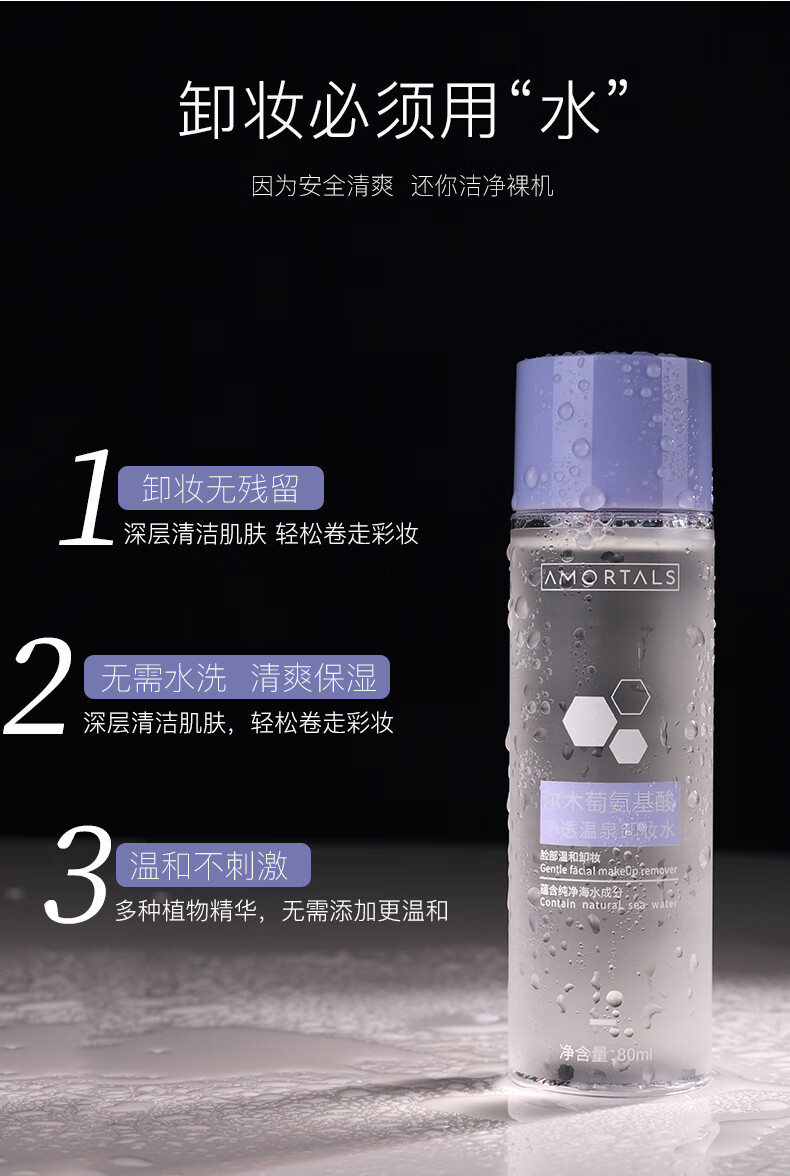 尔木萄(AMORTALS)氨基酸净透温泉80ml卸妆水深层清洁温和保湿眼唇可用 节日礼物