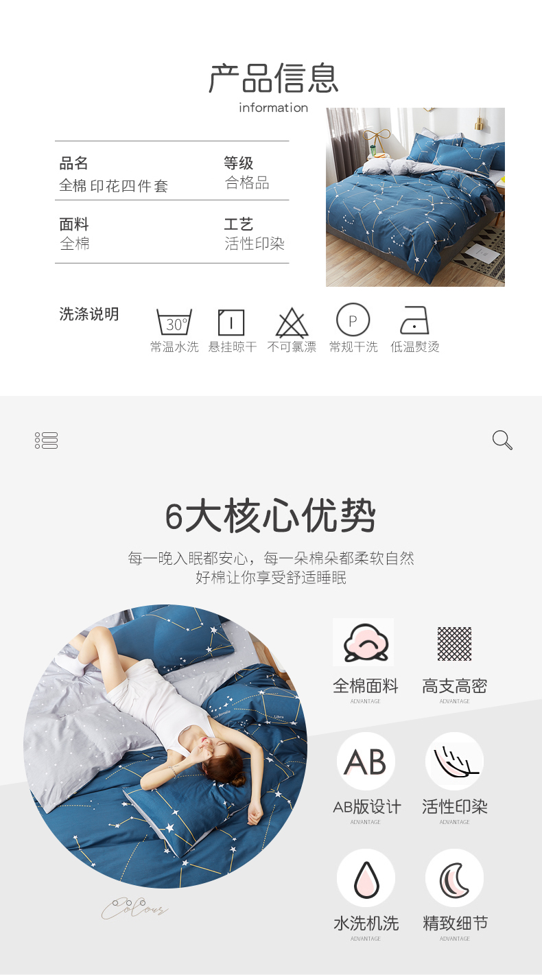 南极人NanJiren 全棉四件套 新疆棉纯棉床上用品双人被套200*230cm床单枕套 1.5/1.8米床 星座