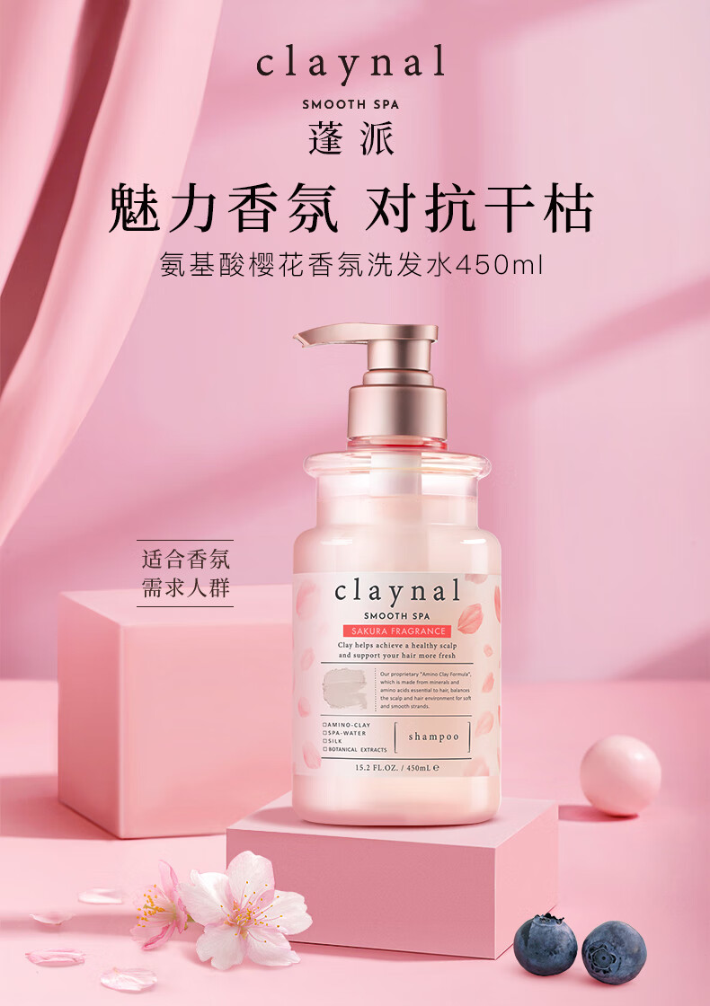 蓬派(CLAYNAL)洗发水滋润呵护樱花香氛洗头膏450ml男女通用氨基酸无硅油