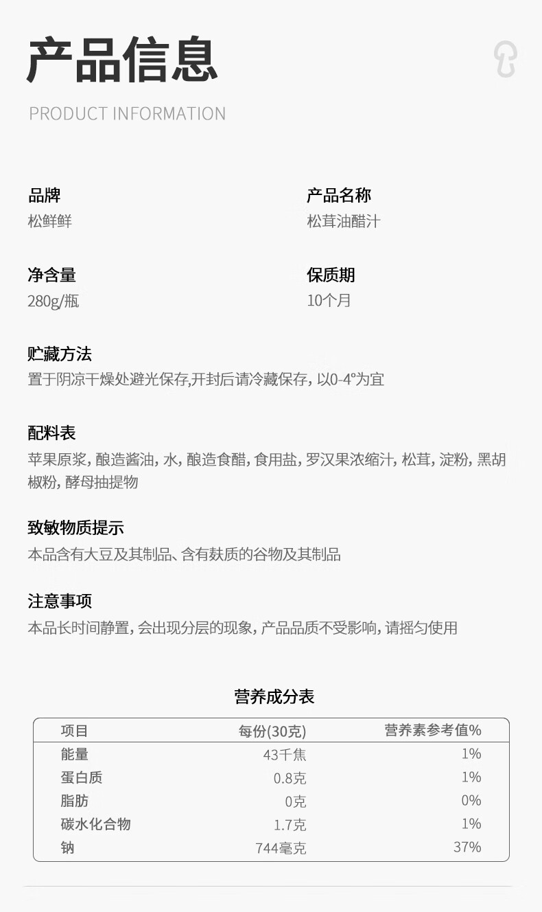 松鲜鲜松茸油醋汁0脂肪蔬菜水果...