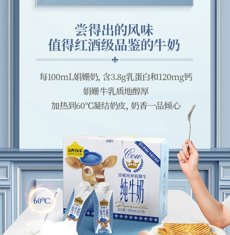 认养一头牛娟姗纯牛奶 250ml*10盒 高端牛奶 纯牛奶 早餐奶 送礼佳选 一提装