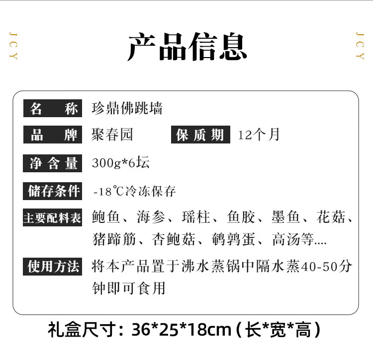 聚春园福州正宗原汤佛跳墙珍鼎300g*6罐装加热即食鲍鱼海参礼盒年货送礼