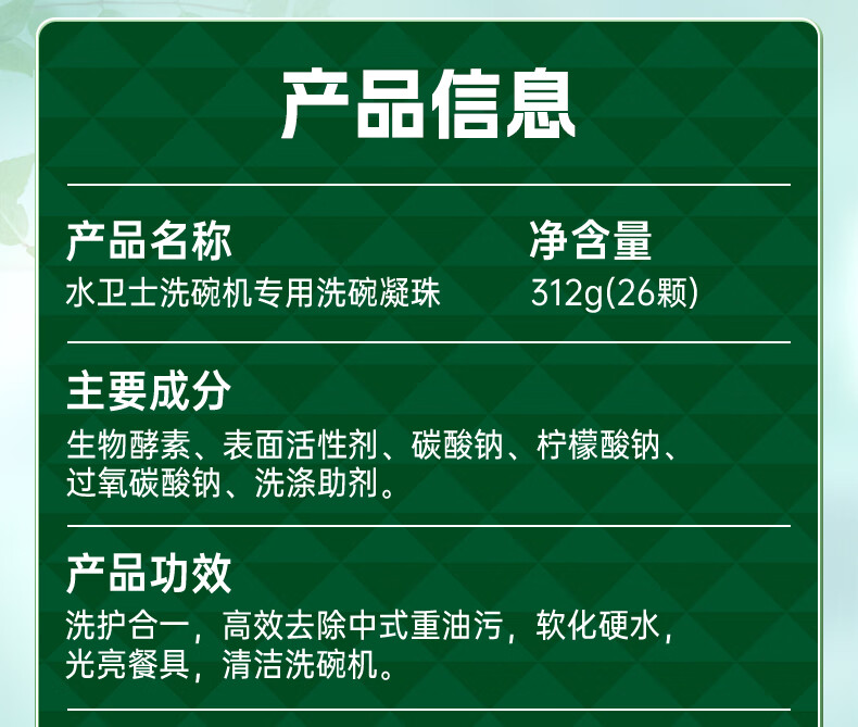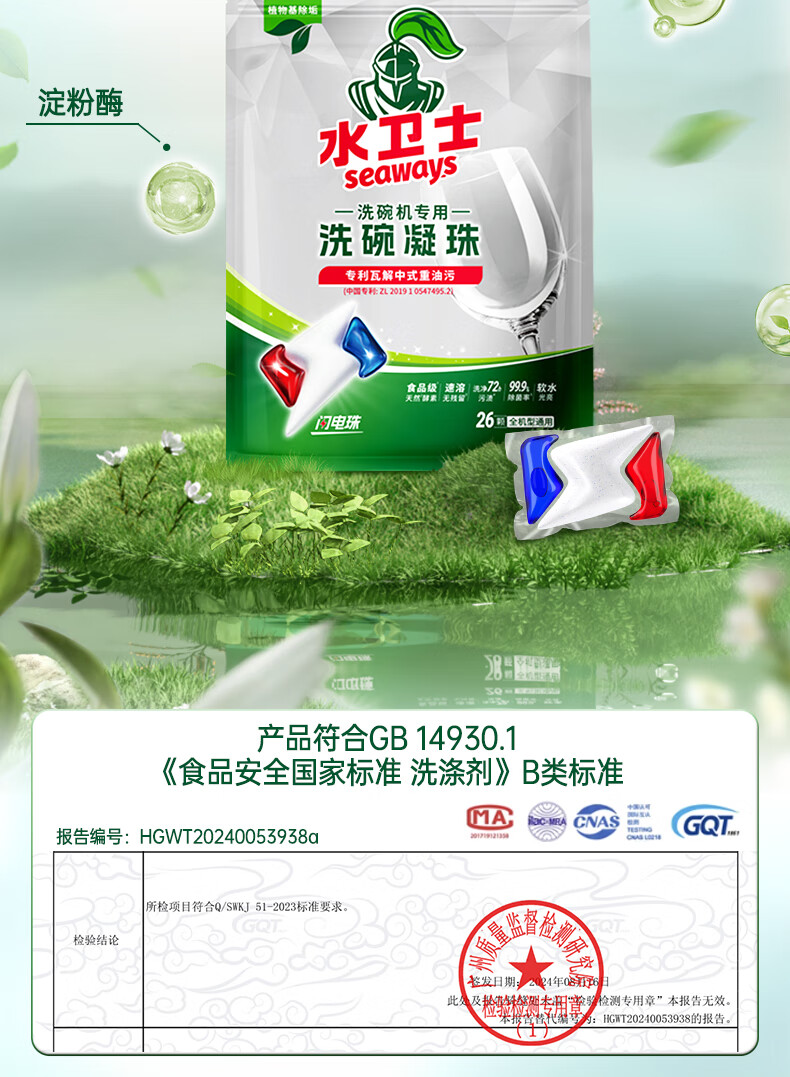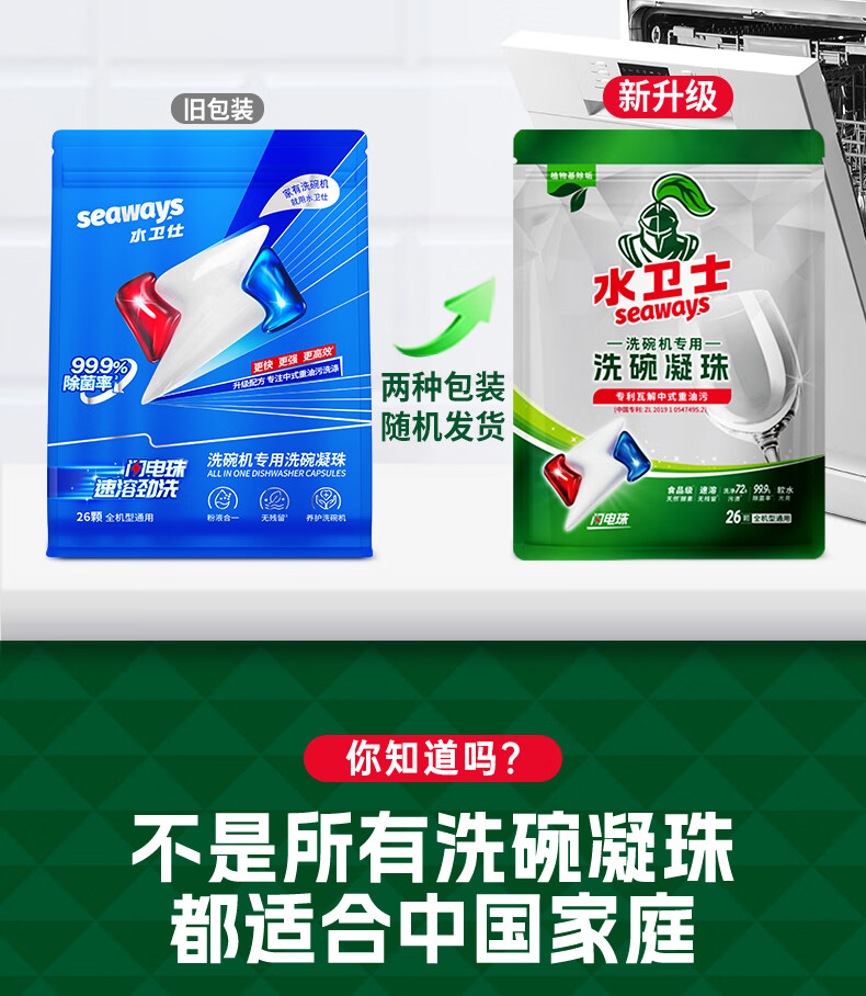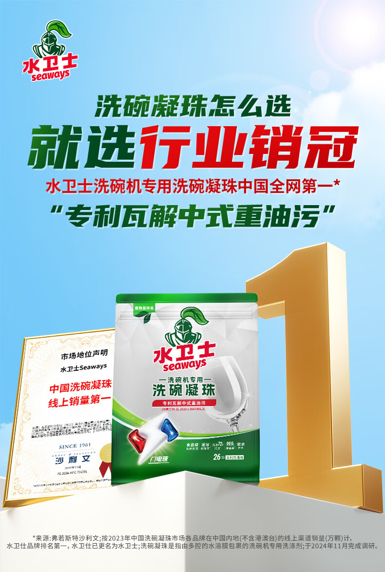 水卫仕(seaways)洗碗机洗碗凝珠闪电珠26颗 洗碗机洗涤清洁剂洗碗粉洗碗块 定期购