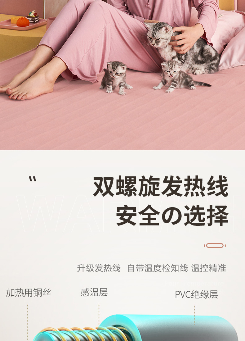 南极人电热毯 长1.8米*宽1.5米 安全调温双人电褥子双温双控