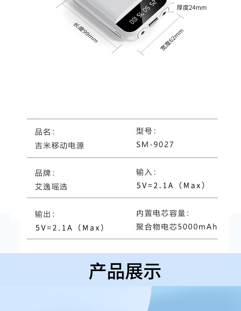 艾逸瑶选 吉米移动电源 SM-9027