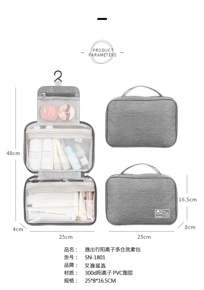 艾逸瑶选 逸出行阳离子多仓洗漱包 SN-1801