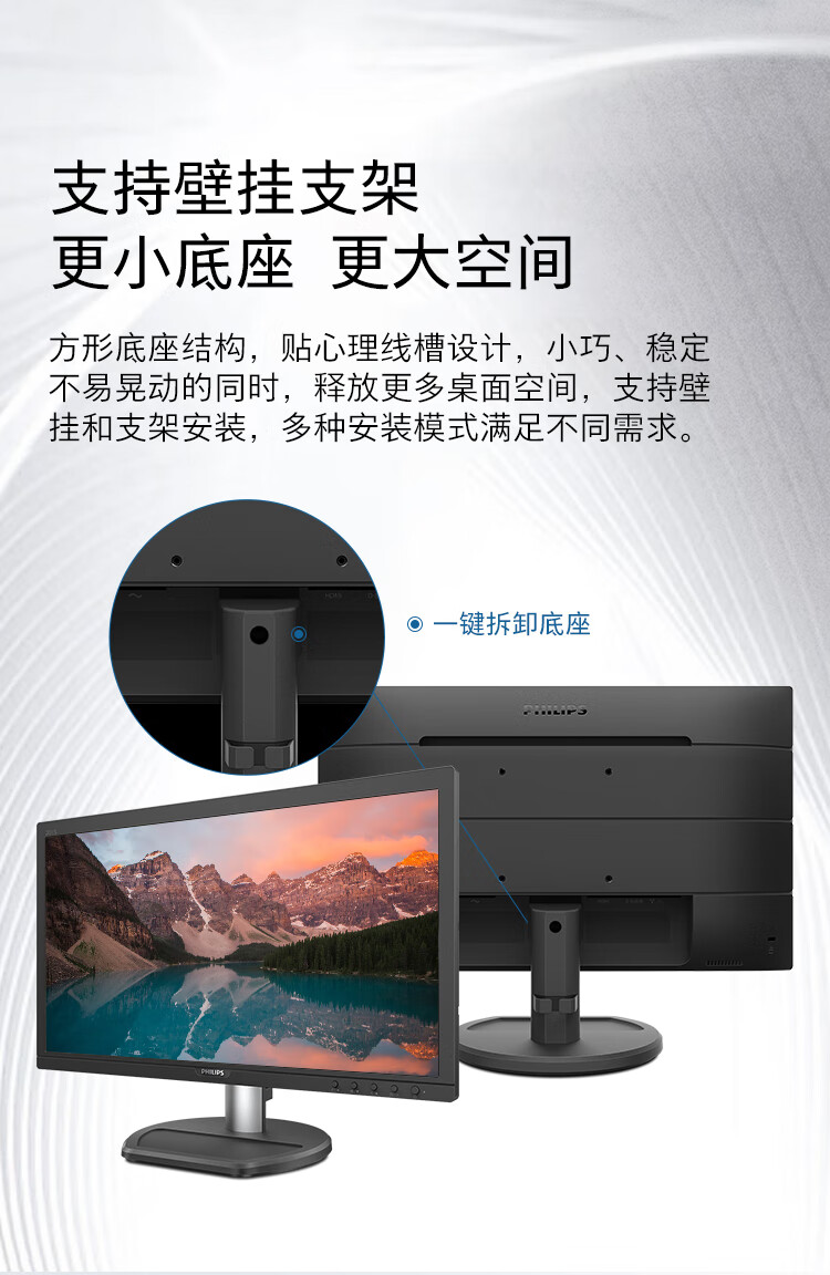 飞利浦(PHILIPS) 19.5英寸 商用高清显示器 TUV低蓝光护眼不闪屏 VGA+HDMI 支持壁挂 办公电脑显示屏 201S8LHSB2