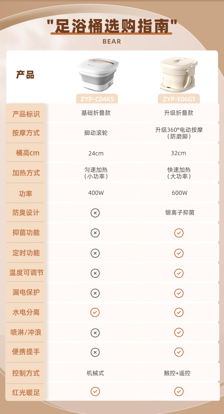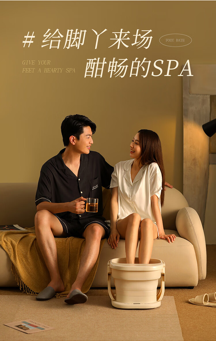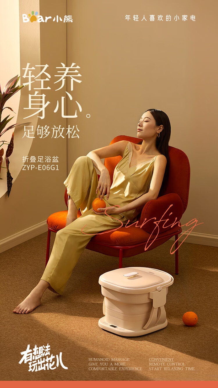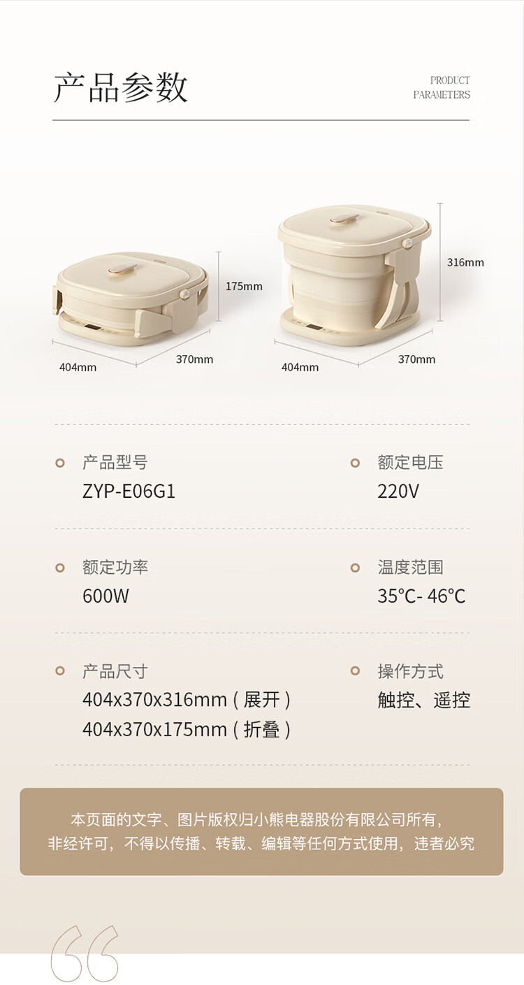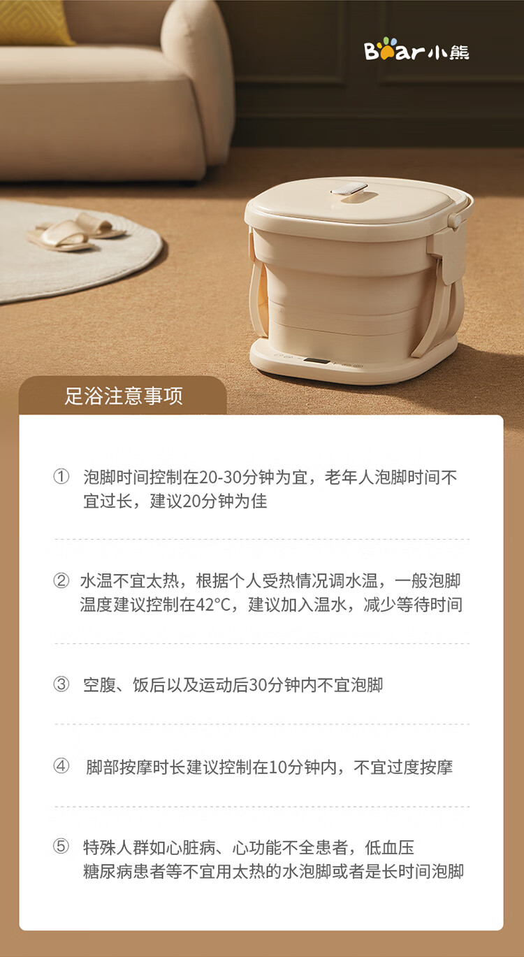 小熊(Bear)泡脚桶 折叠足浴盆 全自动按摩加热洗脚盆 电动按摩足浴桶遥控智能恒温足疗盆家用节日礼物E06G1