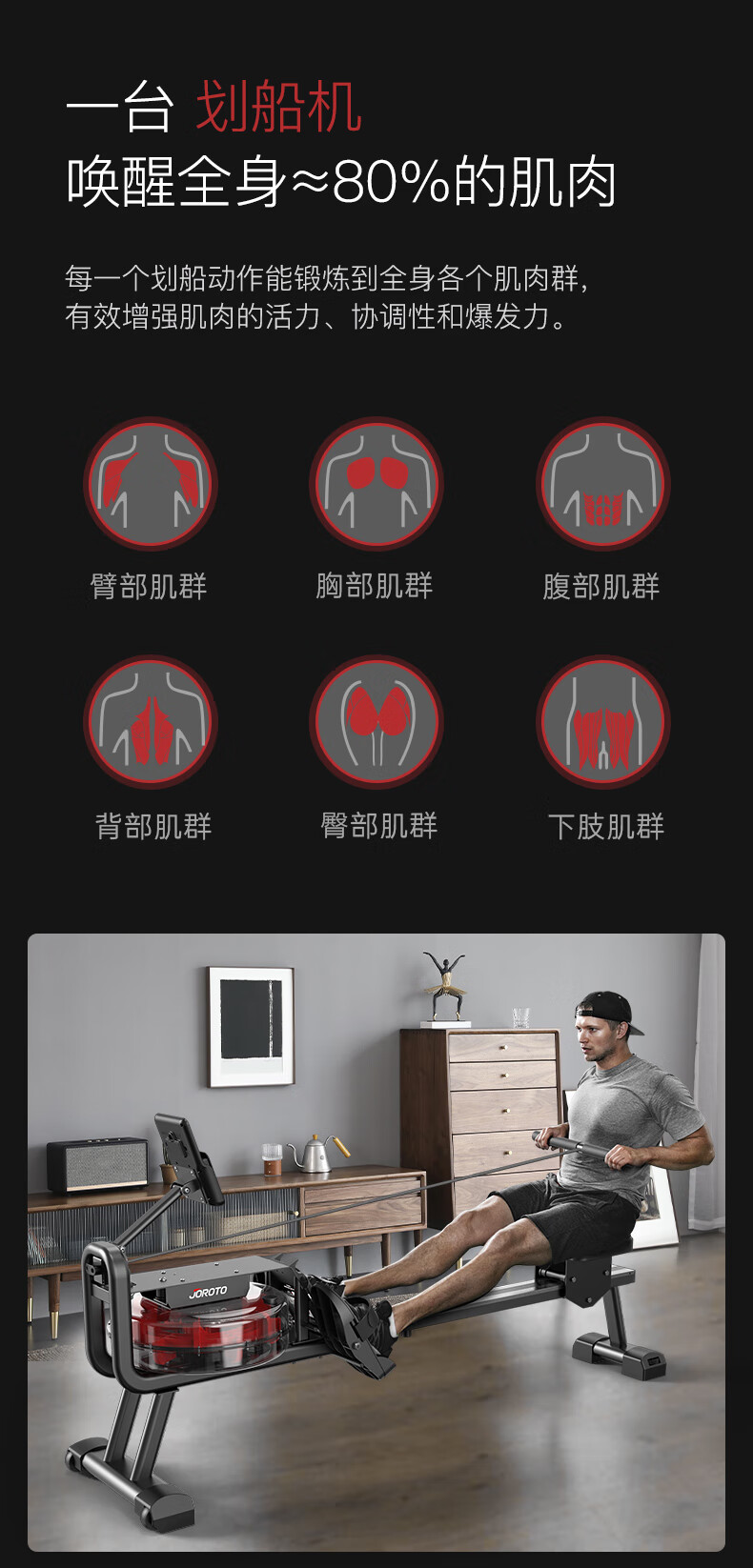 捷瑞特(JOROTO)美国品牌智能水阻划船机家用有氧健身器材纸牌屋MR23 淃簧水阻