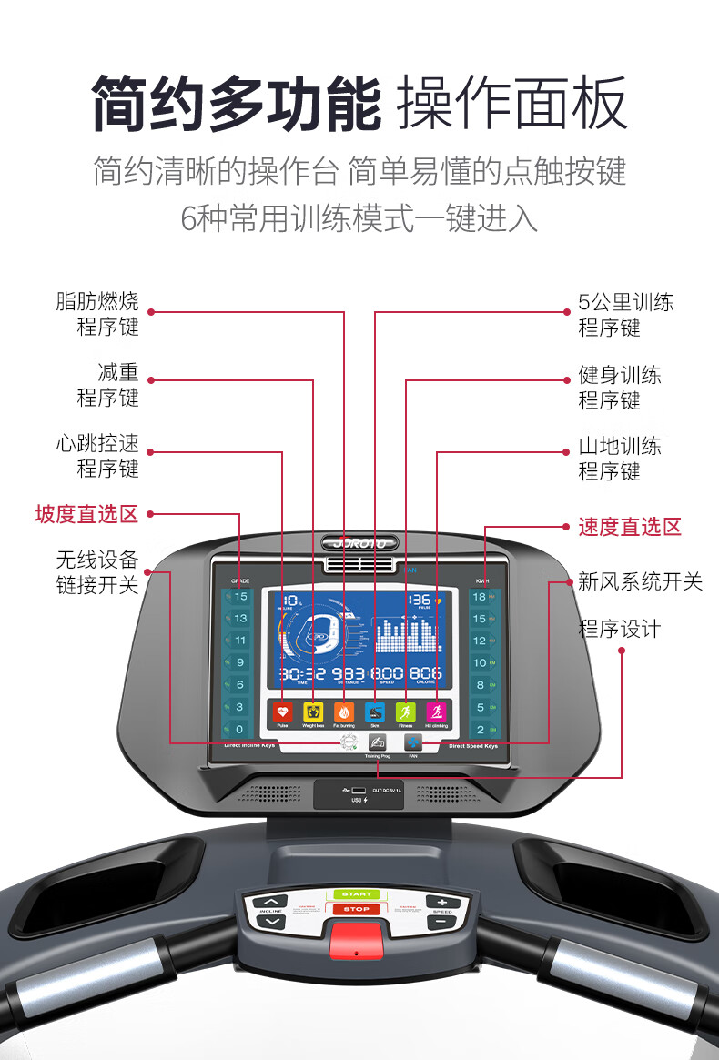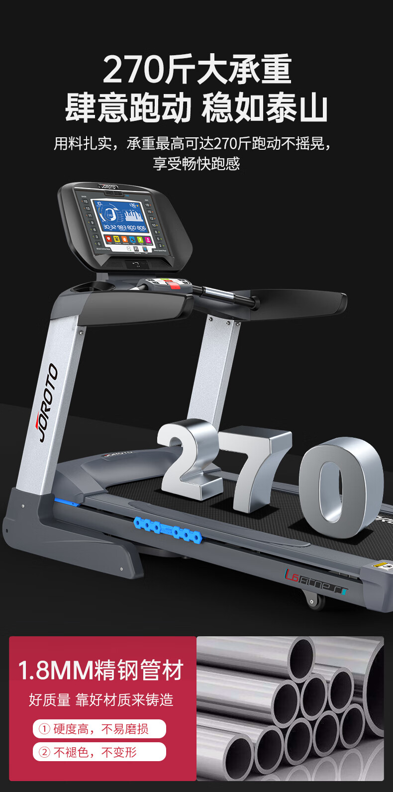 捷瑞特(JOROTO)美国品牌跑步机 家用商用智能减震折叠健身房运动健身器材L6