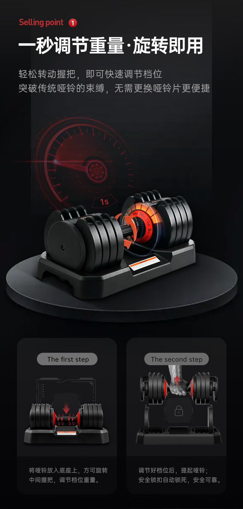 捷瑞特(JOROTO)美国品牌快速可调节哑铃套装组合宅家运动健身器材J-KT20