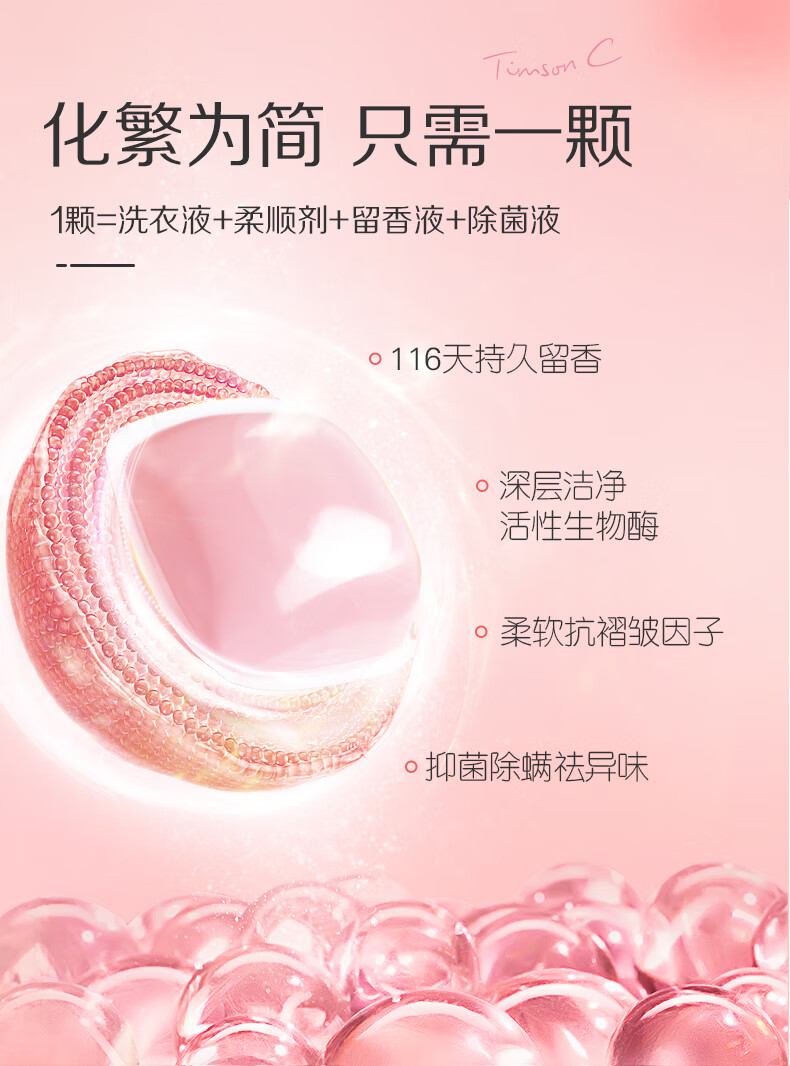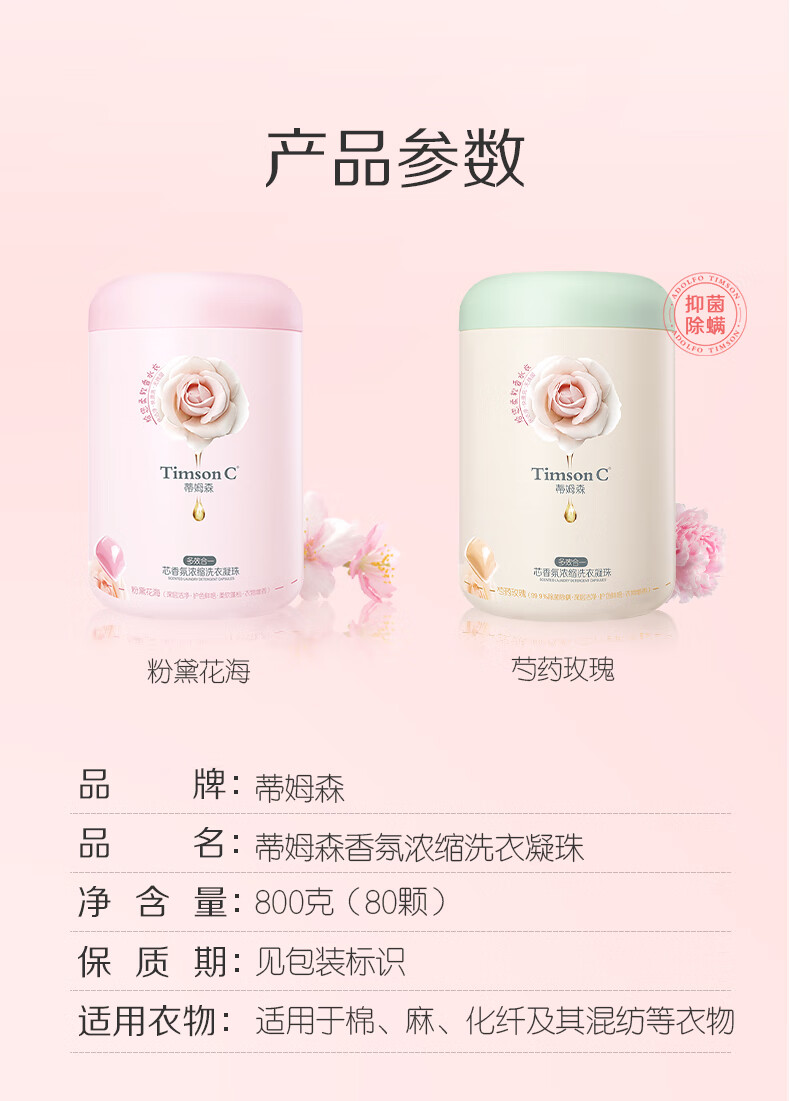 阿道夫.蒂姆森洗衣凝珠除螨除菌三合一持久留香浓缩洗衣液洗衣球芍药玫瑰80颗