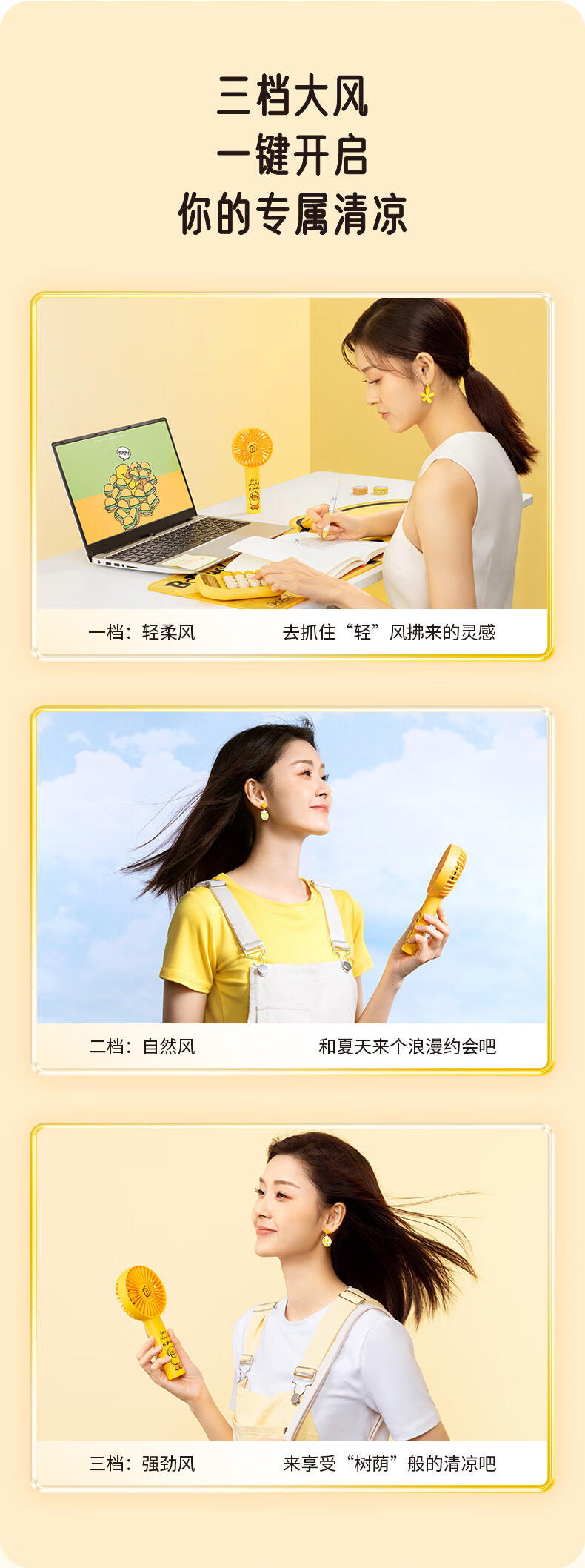 几素小风扇迷你手持风扇户外便携式办公室桌面小电扇2000mAh 小黄鸭款 FA21