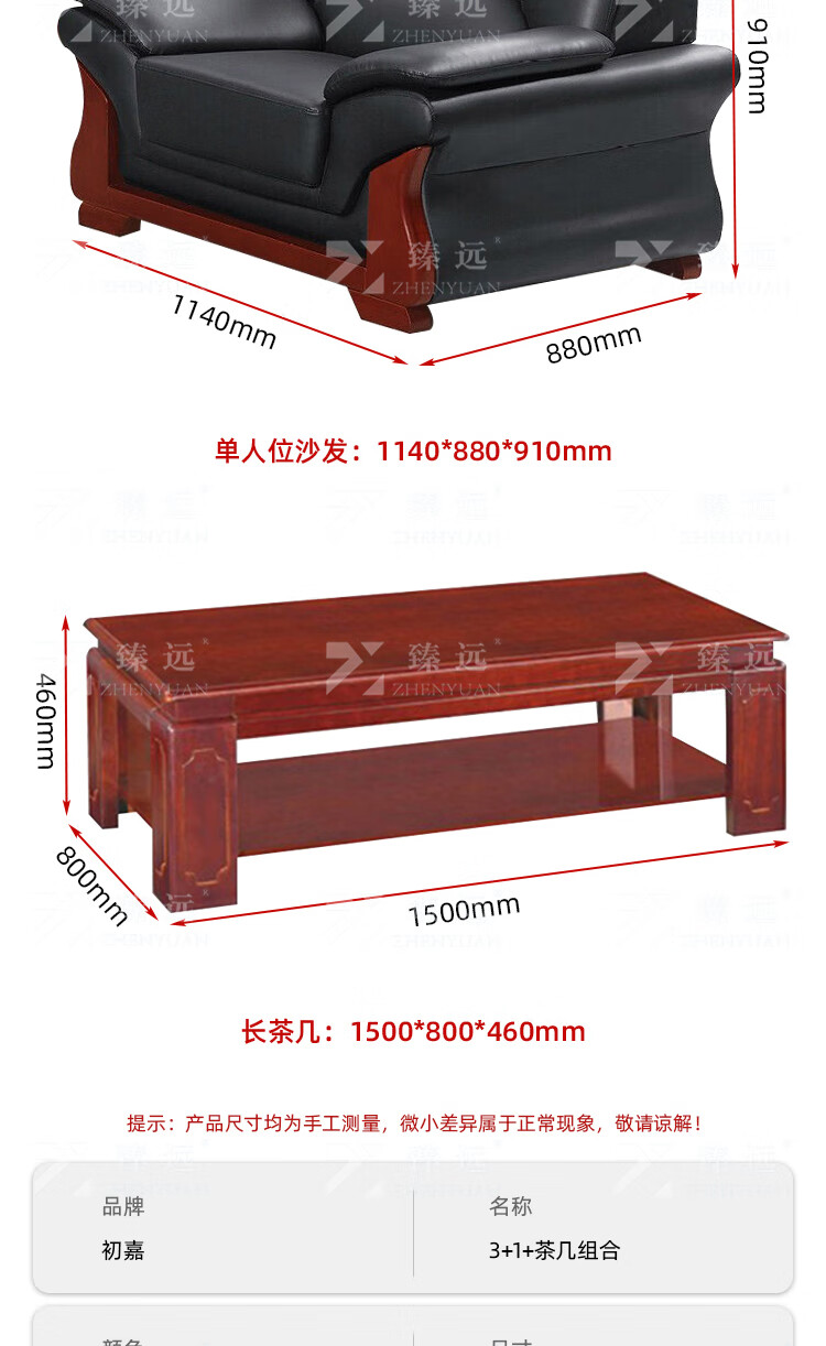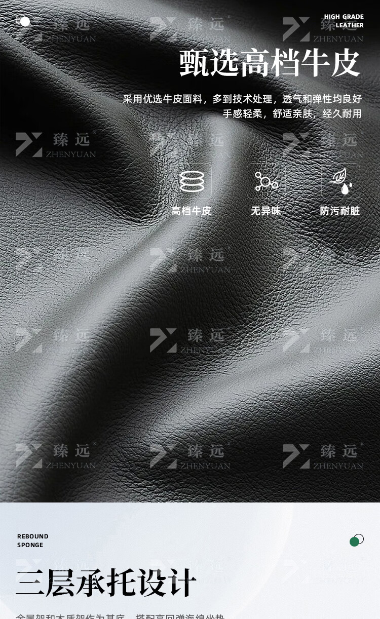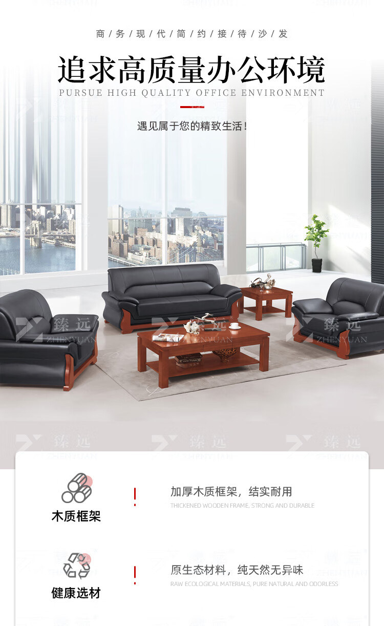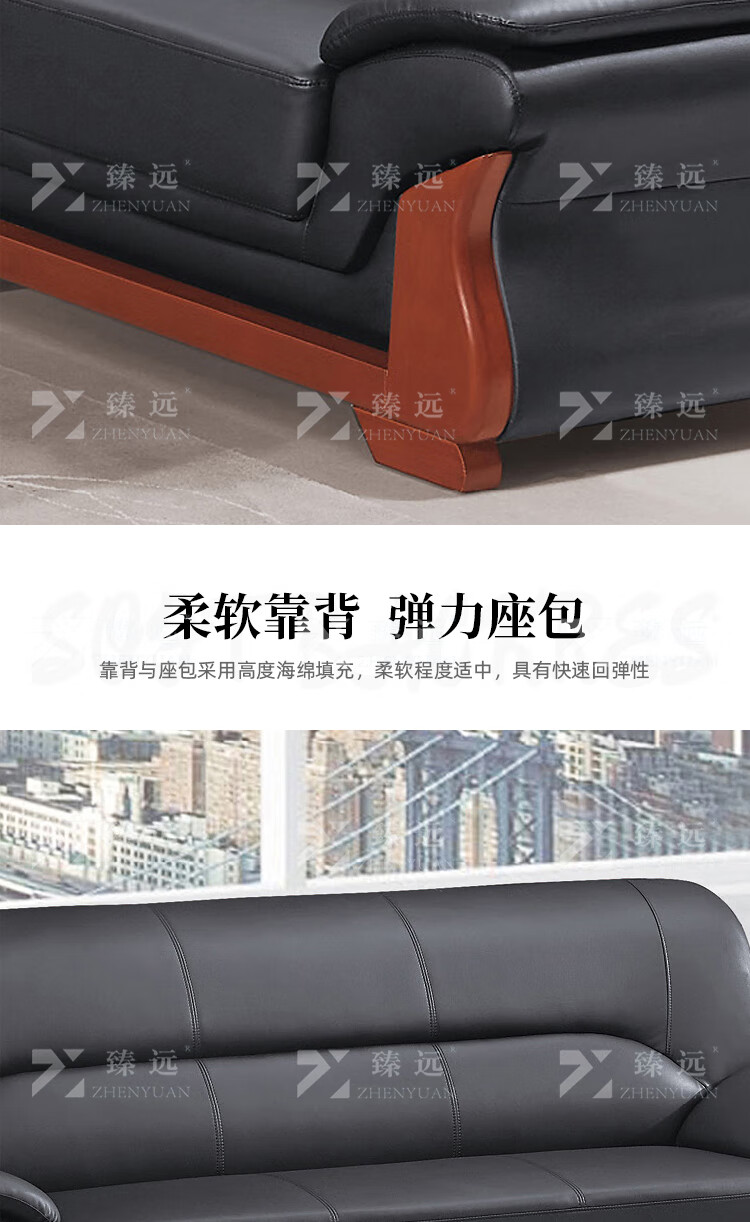 臻远ZYJJ-80288办公沙发茶几组合简约会客接待沙发牛皮3+1+长茶几