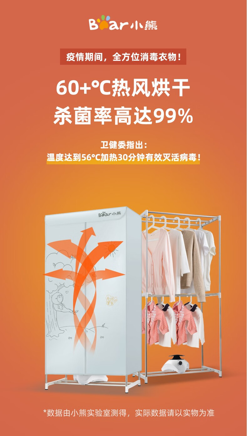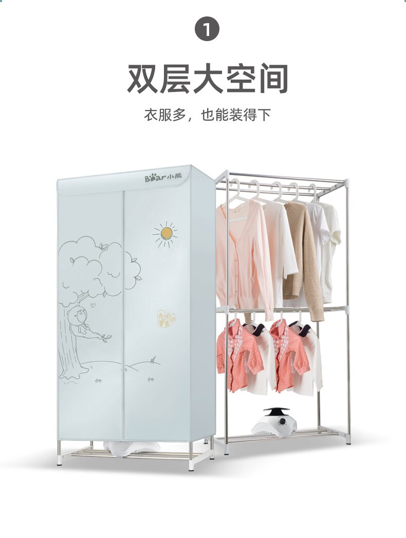 小熊干衣机/烘干机家用婴儿衣物暖风烘衣机高温杀菌双层大容量干衣柜风干机定时/HGJ-B10V1