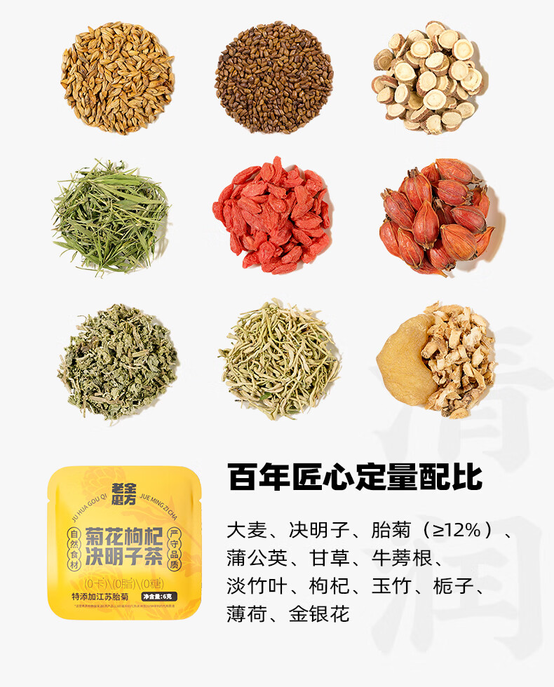 老金磨方 菊花枸杞决明子金银花茶药食同源清果热茶包肝草袋泡护熬夜养生祛湿茶男120g