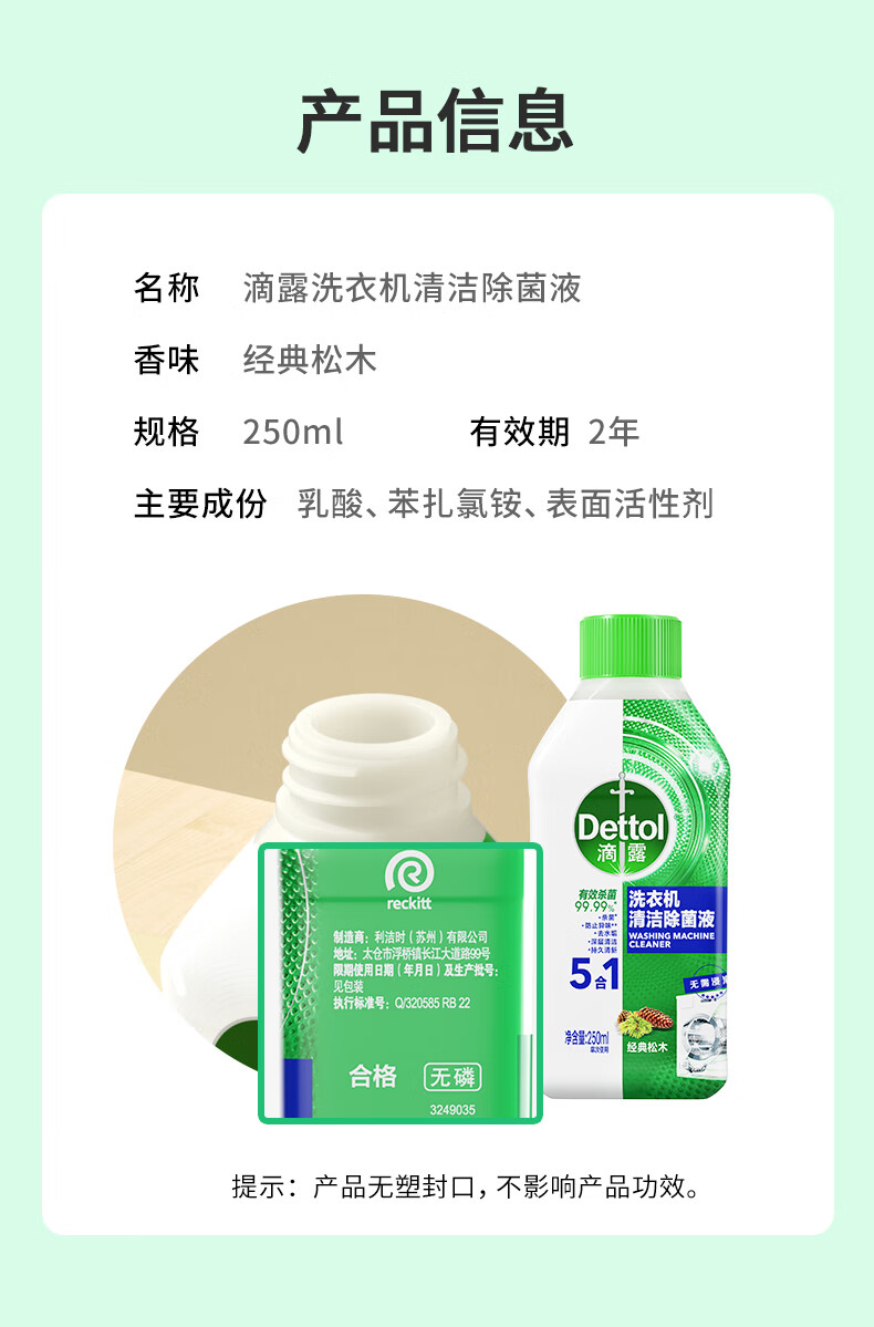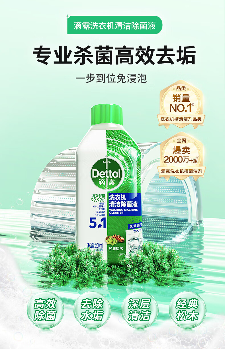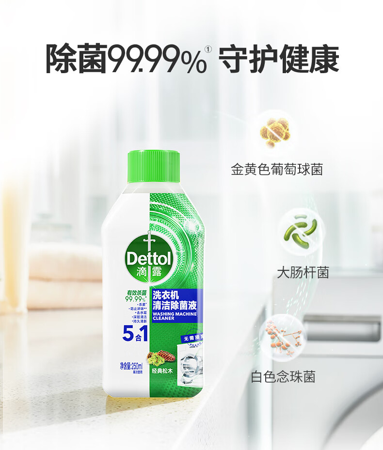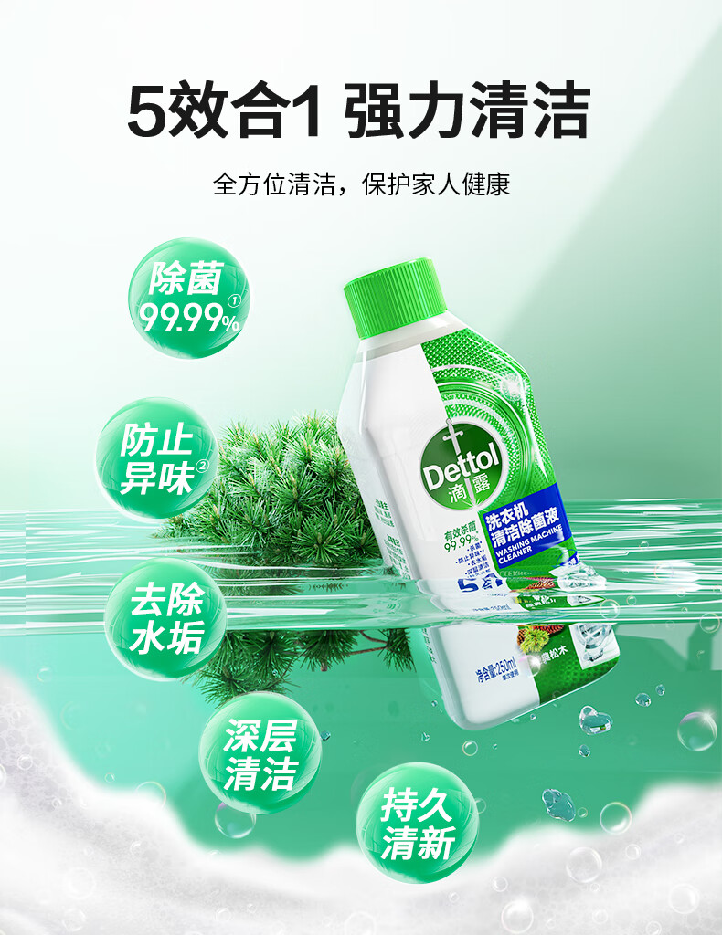 滴露(Dettol)洗衣机清洗剂250mL松木滚筒波轮机槽洗衣机清洁剂强力除垢杀菌