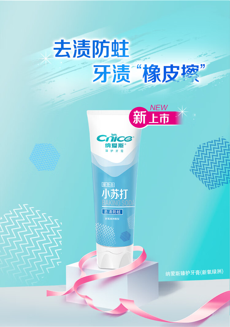 纳爱斯小苏打牙膏含氟防蛀固齿牙龈护理温和去渍清新成人小苏打牙膏120g