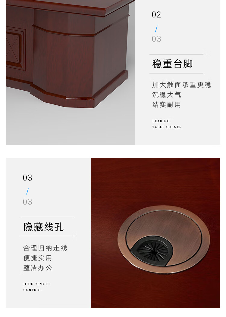臻远ZY-DBT-5 油漆家具老板桌大班台办公桌主管经理桌含副柜2.4米
