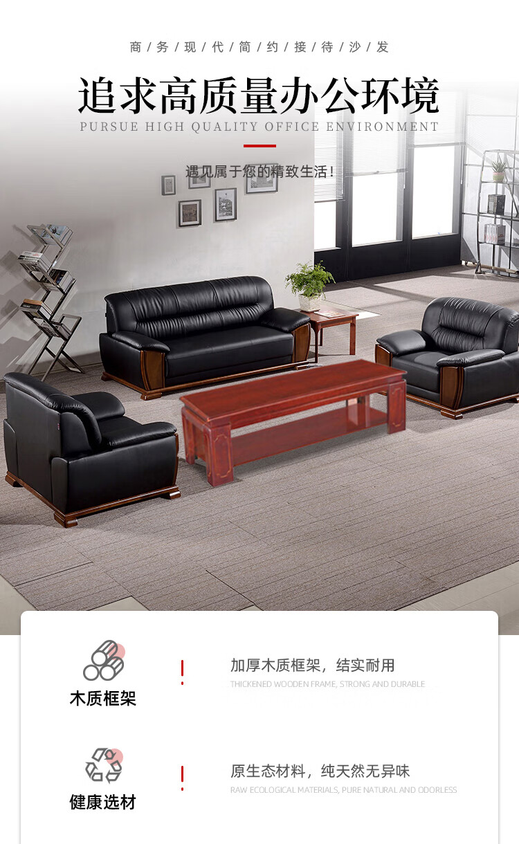 臻远ZYJJ-80279办公沙发茶几组合办公室简约会客沙发 西皮3+1+长茶几