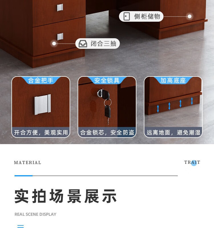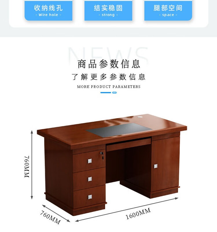臻远ZY-BT-21 油漆木皮办公桌电脑桌职员台主管经理桌1.6m 红胡桃色