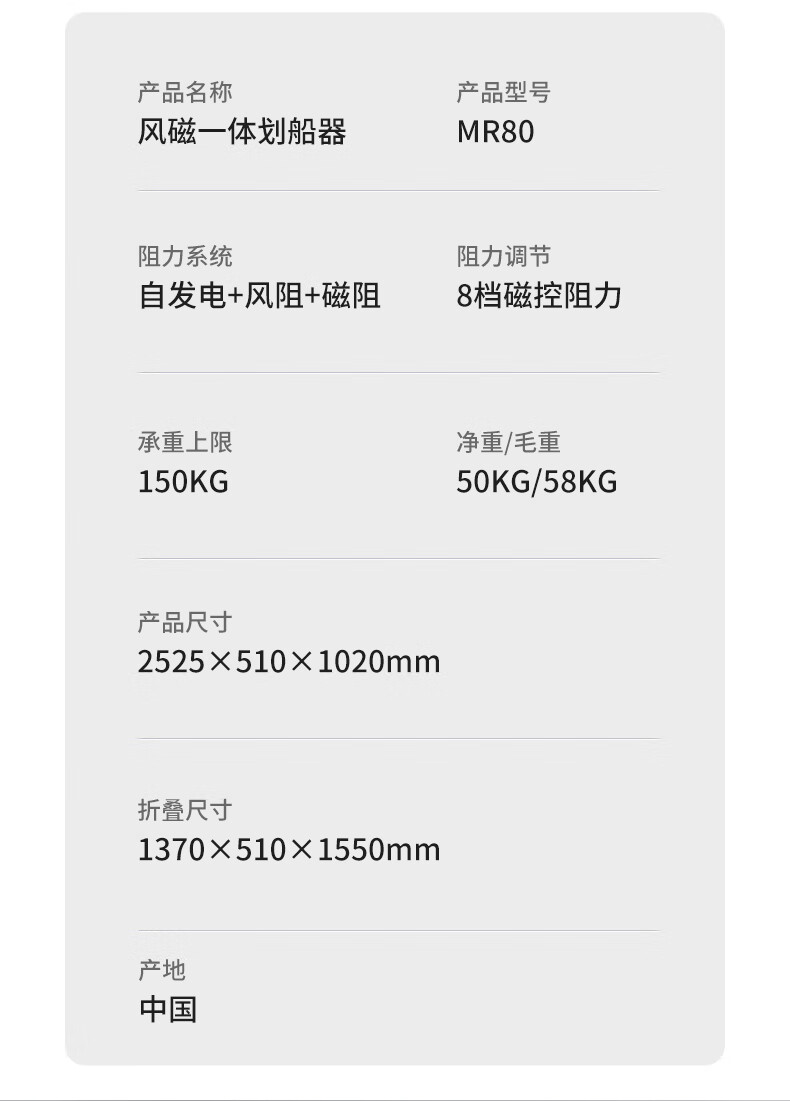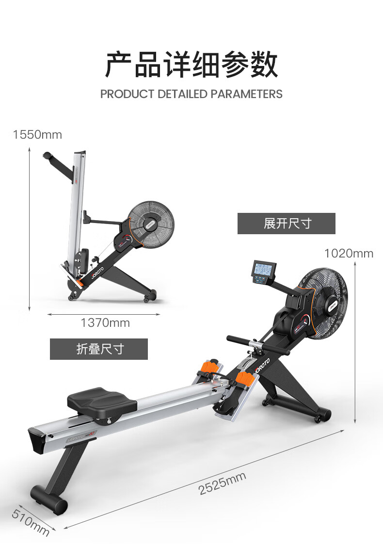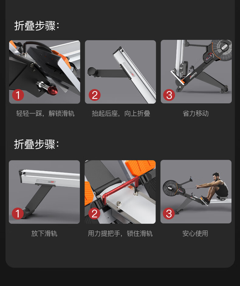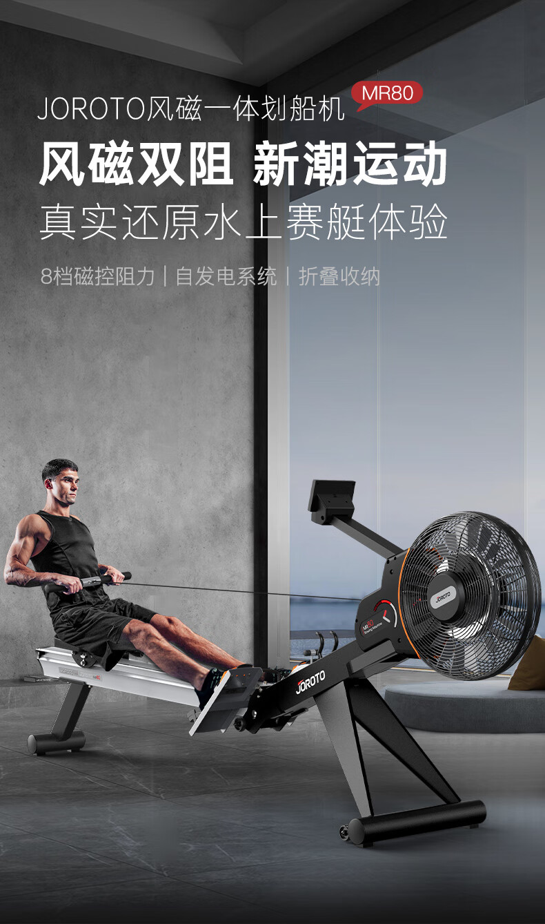 捷瑞特(JOROTO)美国品牌划船机家用风阻磁控室内划船器可折叠运动健身器材MR80