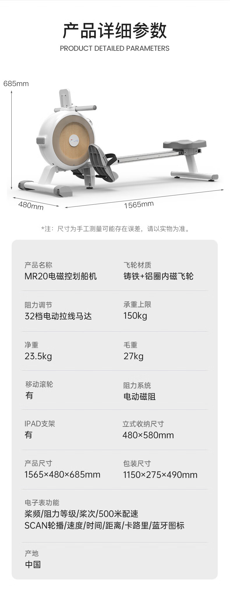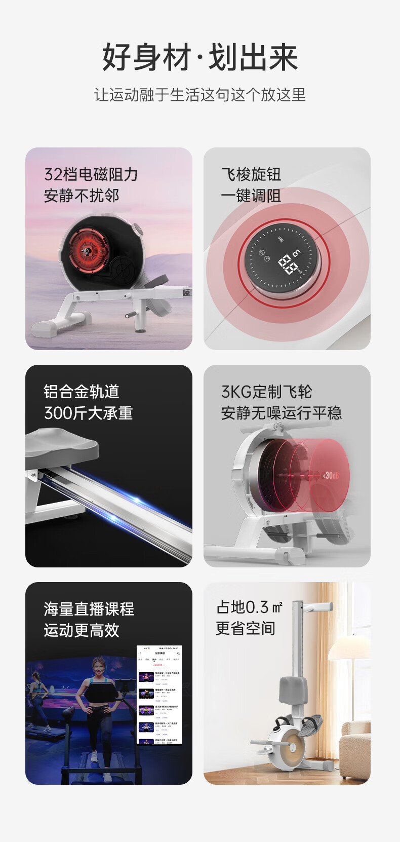 捷瑞特(JOROTO)美国品牌划船机家用磁阻划船器室内健身器材MR20 磁控划船机