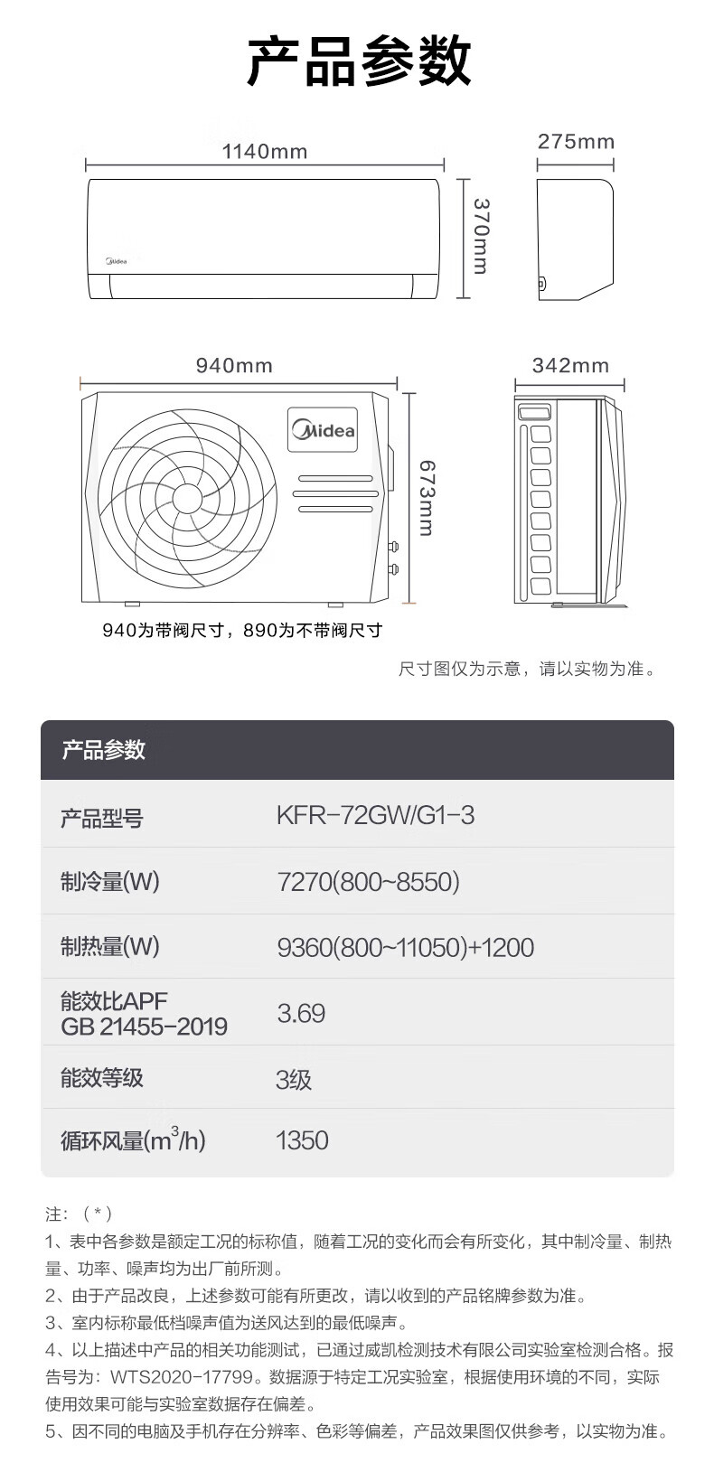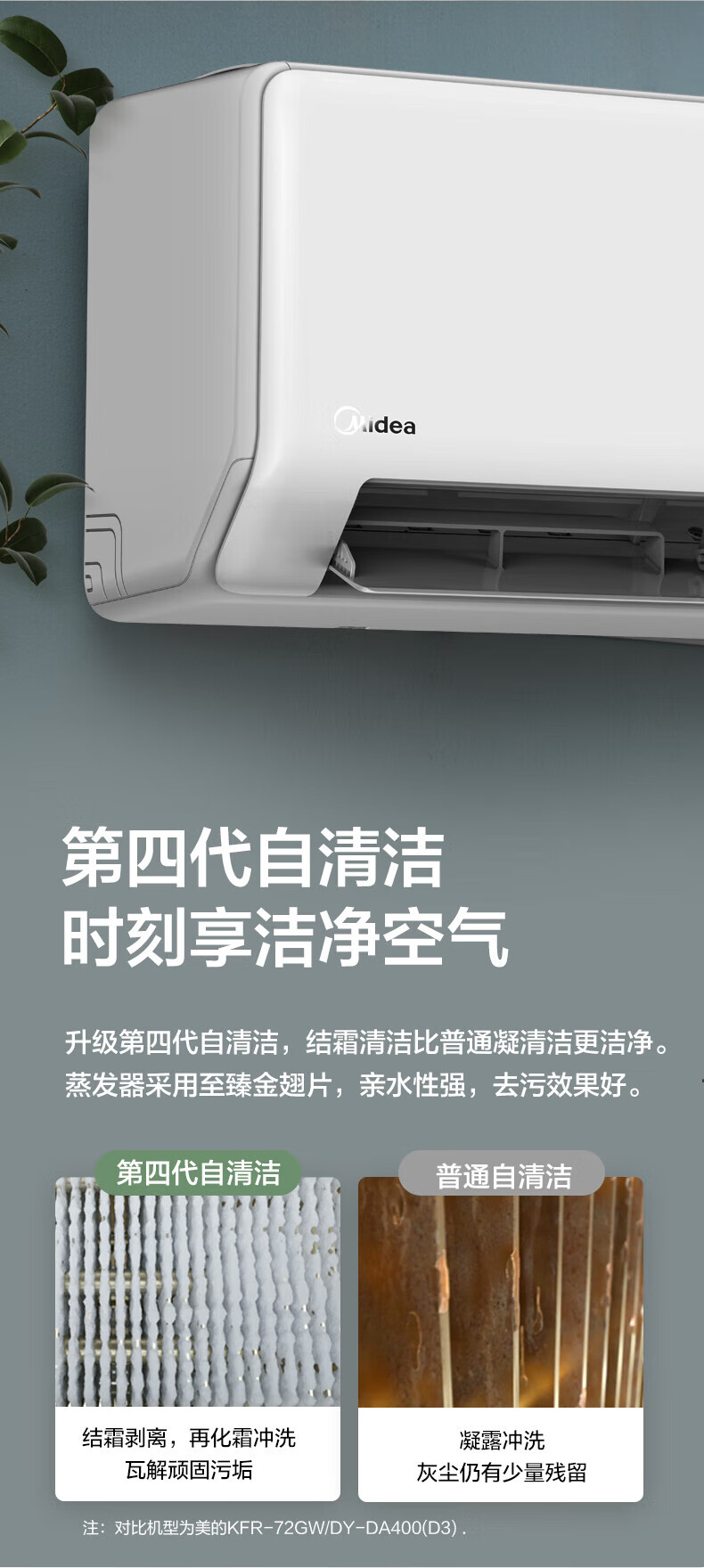 美的(Midea)3匹挂机 新三级能效变频冷暖 大风量自清洁 商铺客厅壁挂式空调挂机 KFR-72GW/G1-3