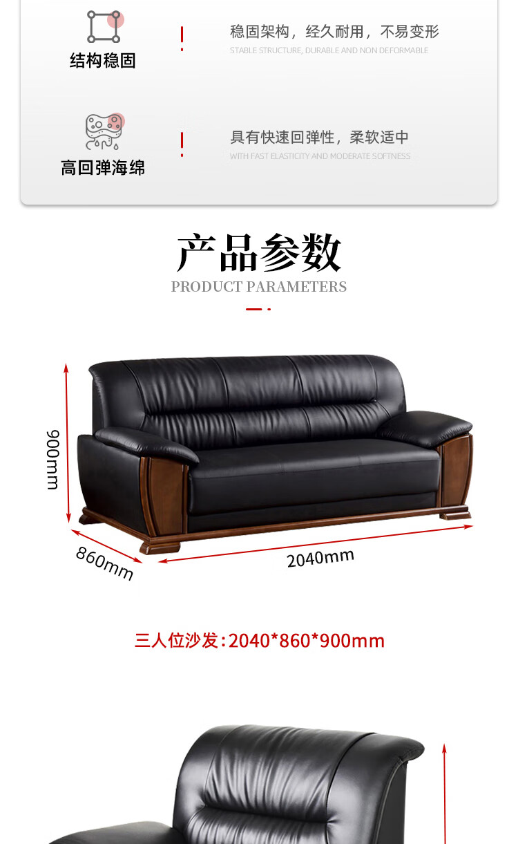 臻远ZYJJ-80282办公沙发茶几组合办公室简约会客沙发 牛皮3+1+长茶几
