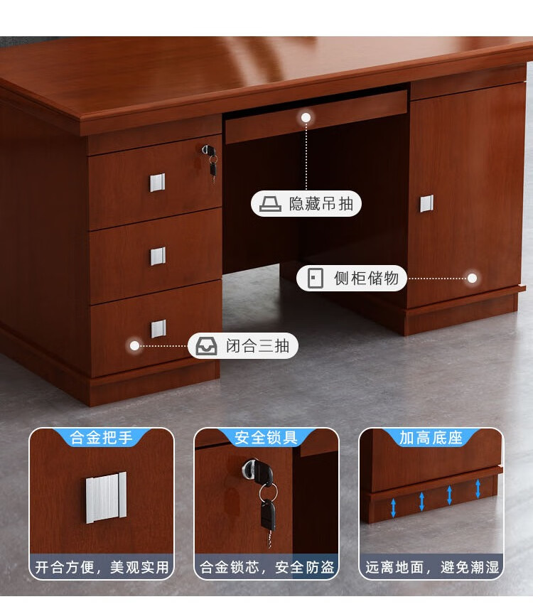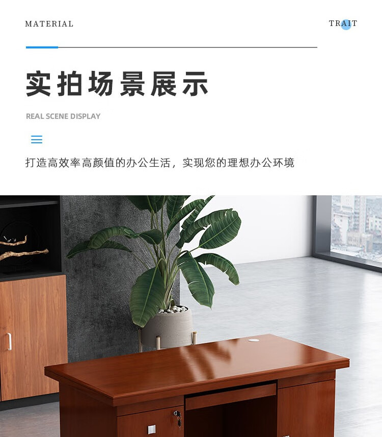 臻远 ZY-BT-23 油漆木皮办公桌电脑桌职员台主管经理桌1.4m 红胡桃色