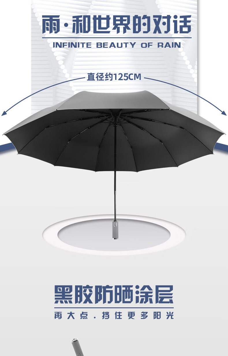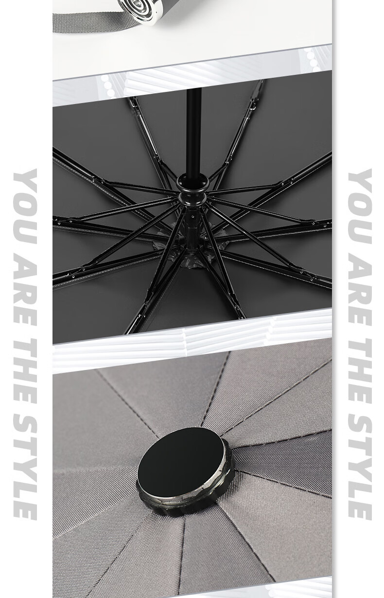 艾逸瑶选 朋克系列10骨加厚黑胶超大全自动晴雨伞 YS-1846 袋装