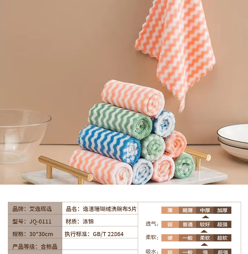 艾逸瑶选洁珊瑚绒多色抹布5片装...