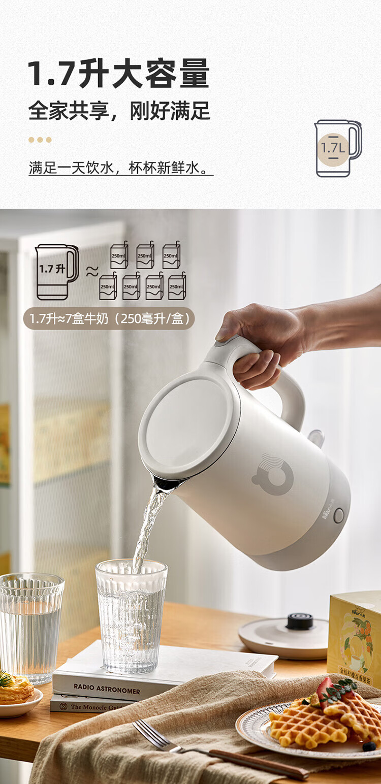 Bear电水壶保温壶电热水壶开水壶1.7L大容量养生 ZDH-Q17U7【ZMD安心系列】