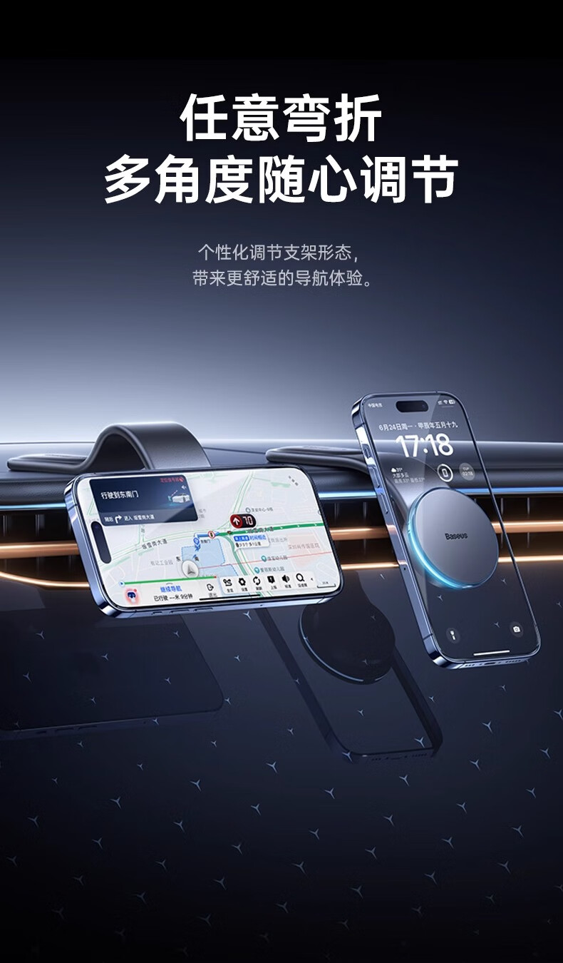 倍思(Baseus)车载手机支架汽车专用磁吸MagSafe无线充电器车内装饰用品特斯拉