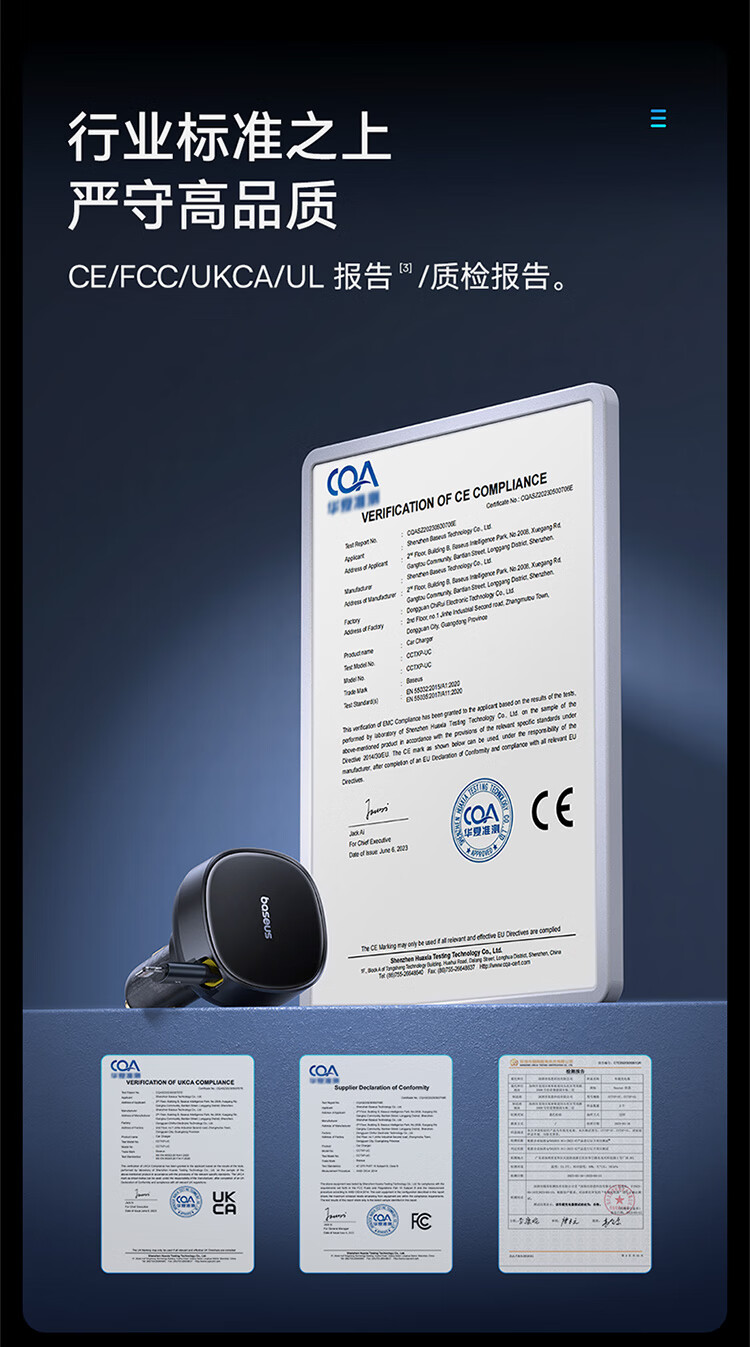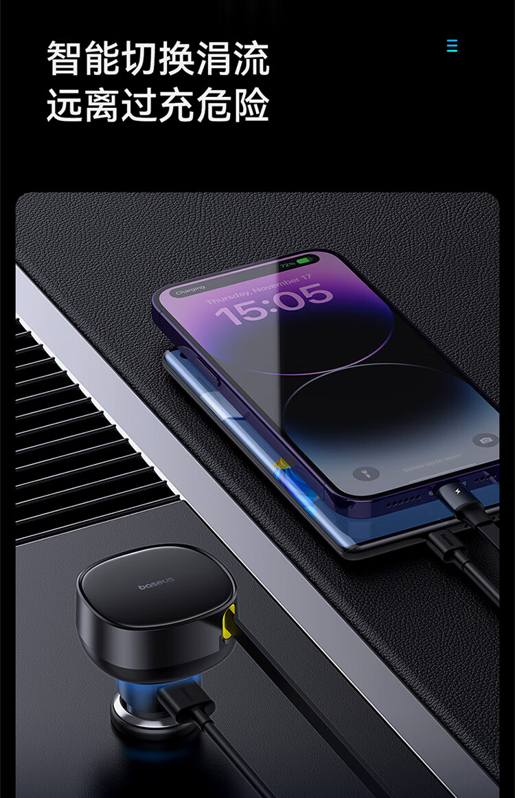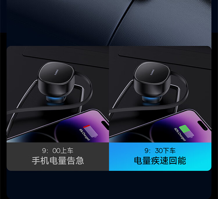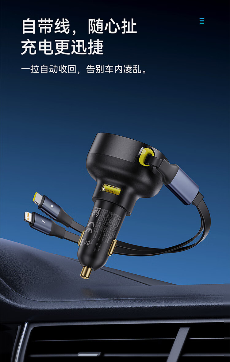 倍思(Baseus)车载充电器点烟器一拖三超级快充转换器自带伸缩线适用苹果华为U