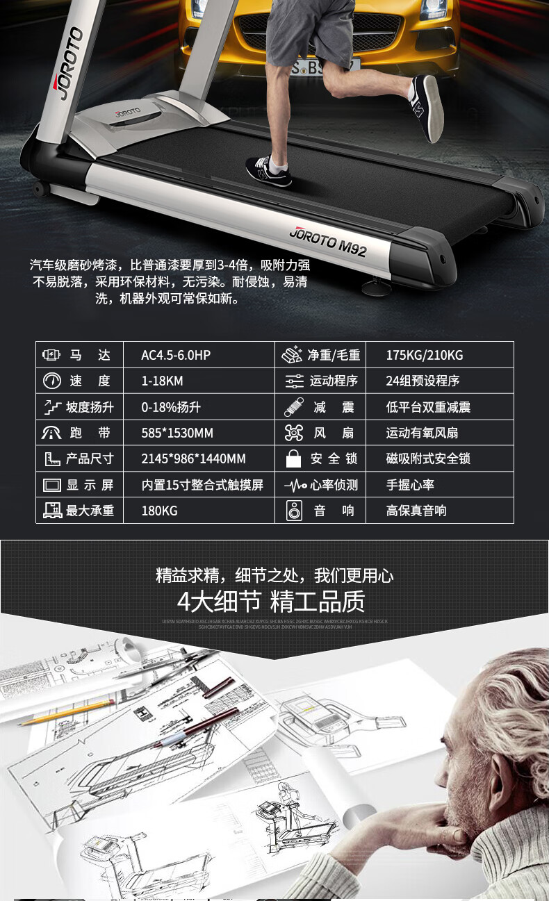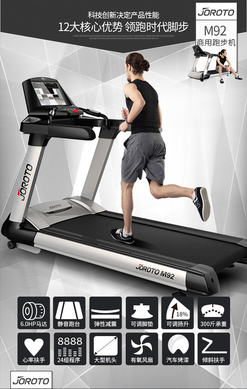 捷瑞特跑步机智能减震可折叠电动坡度商用健身房健身器材M92