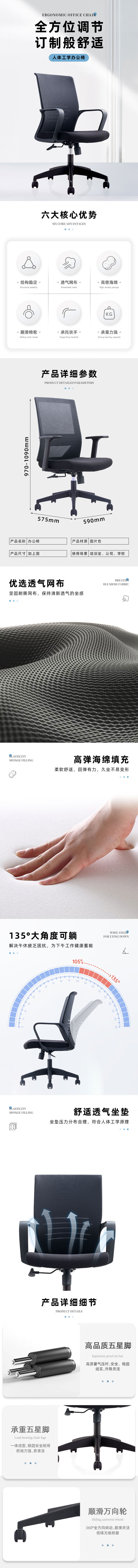 臻远ZY-7444办公椅中背网椅学习椅书房座椅职员椅转椅