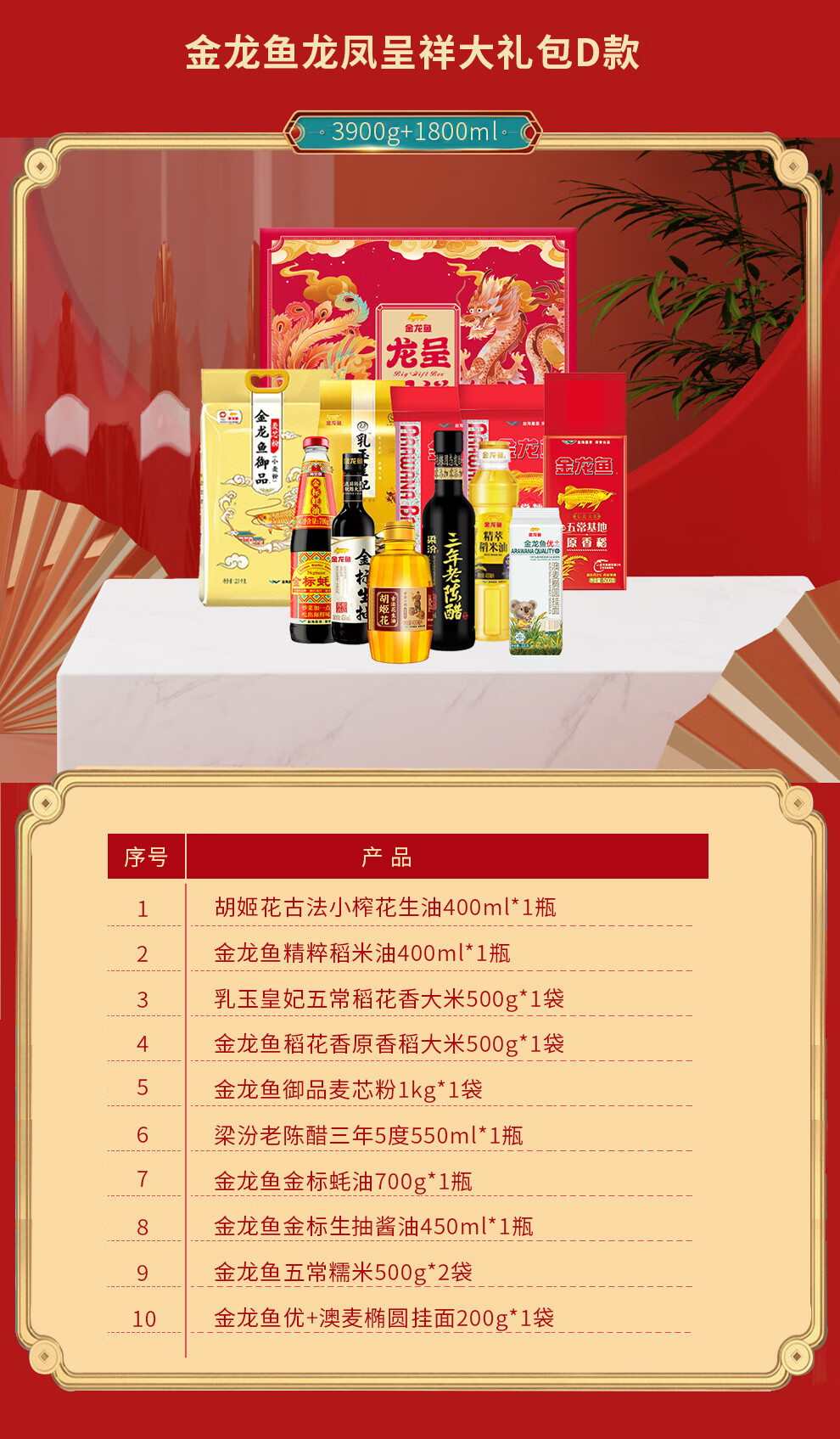 金龙鱼春节年货大礼包龙凤呈祥D款3900g+1800ml米面油调味品礼品团购