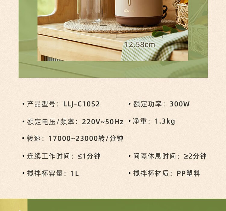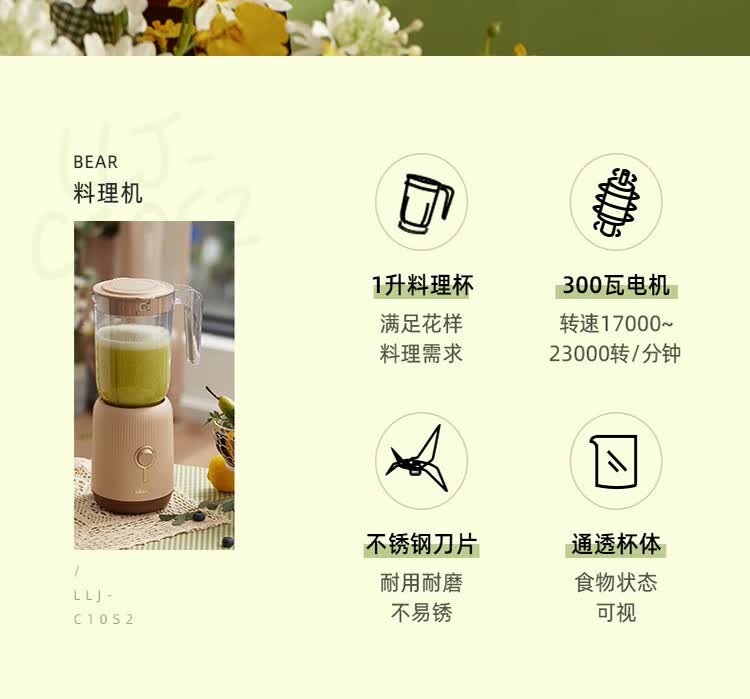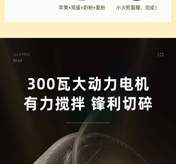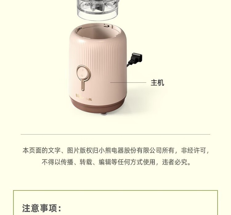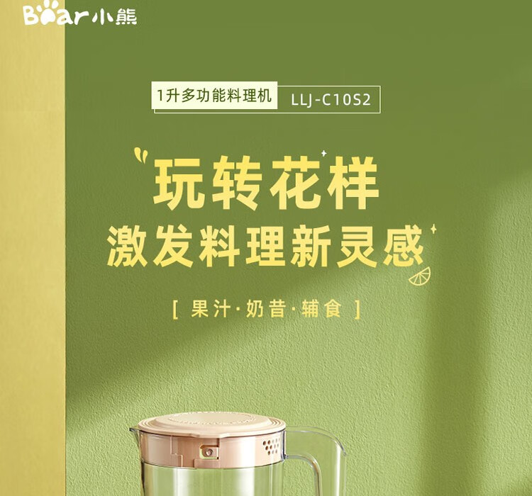 Bear辅食机婴儿宝宝料理机多功能家用小型破壁机搅拌机奶昔机LLJ-C10S2单杯