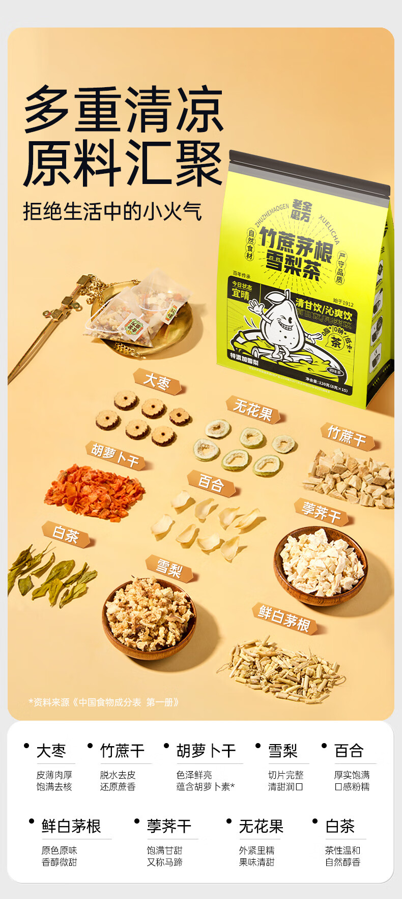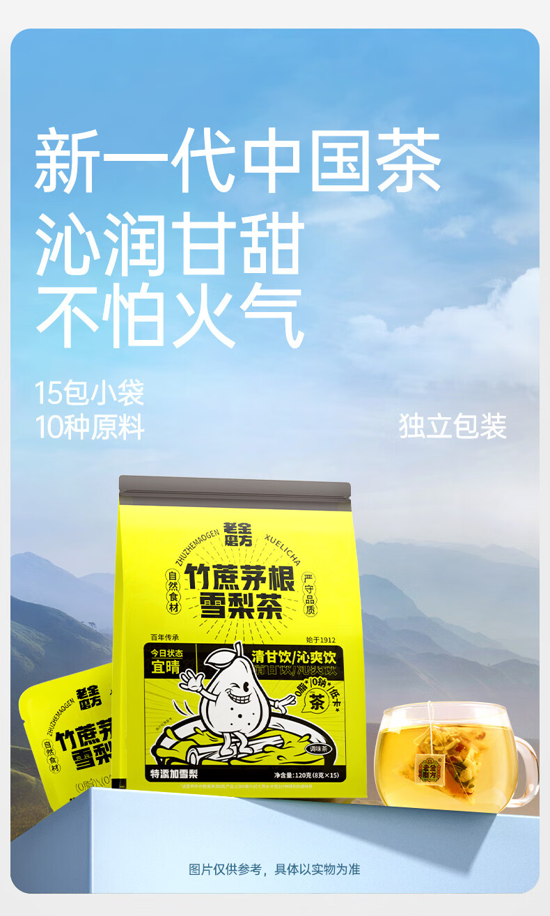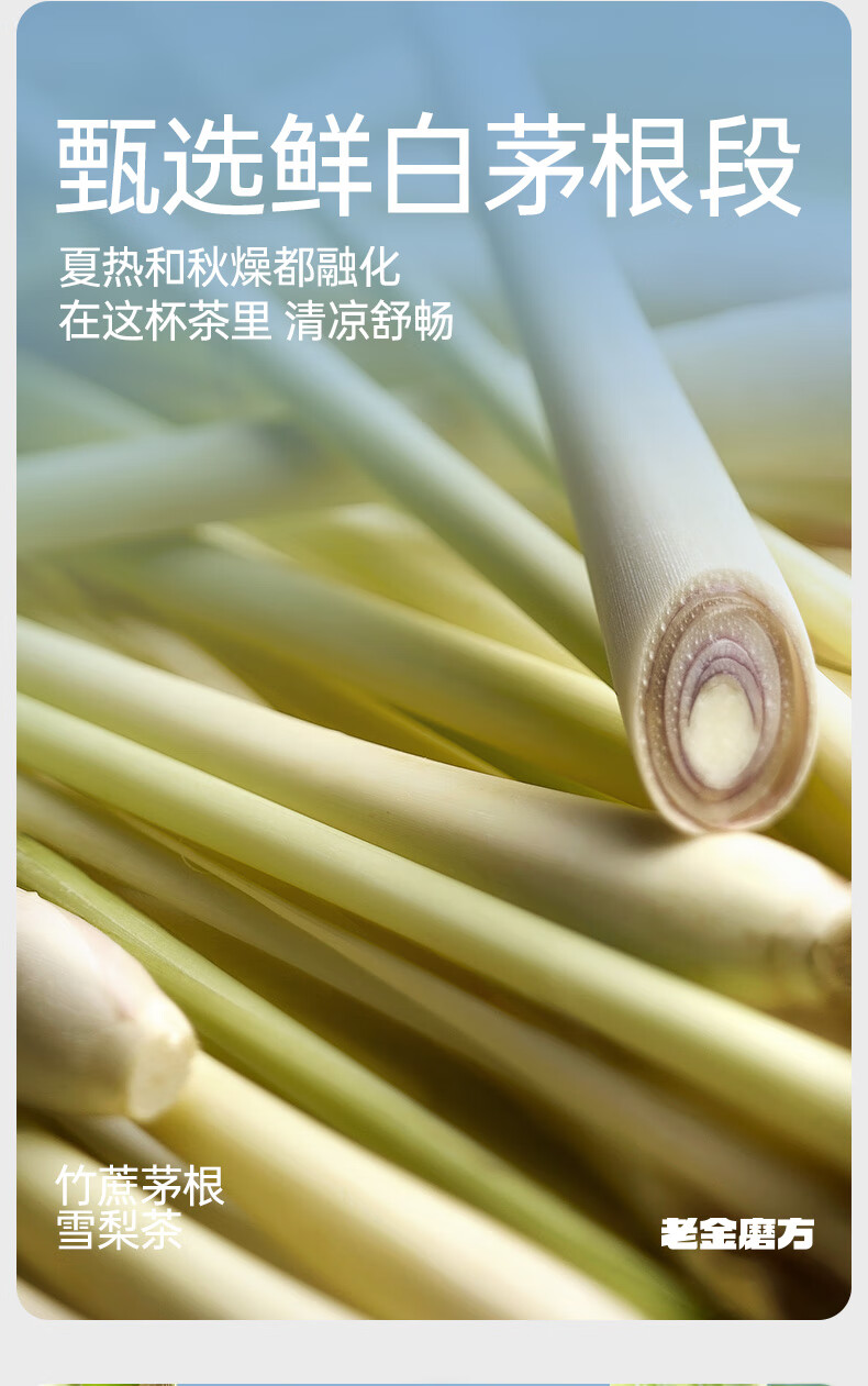 老金磨方竹蔗茅根雪梨茶15袋装药食同源冷热双享祛湿茶广式凉茶清润汤料水果养生120g