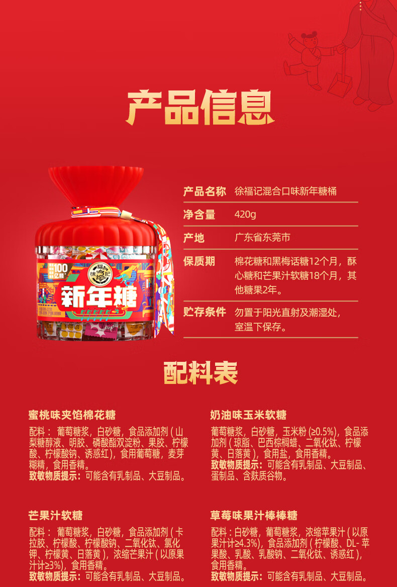 徐福记新年糖 混合口味糖果 结婚喜糖 休闲零食 桶装420g 包装升级