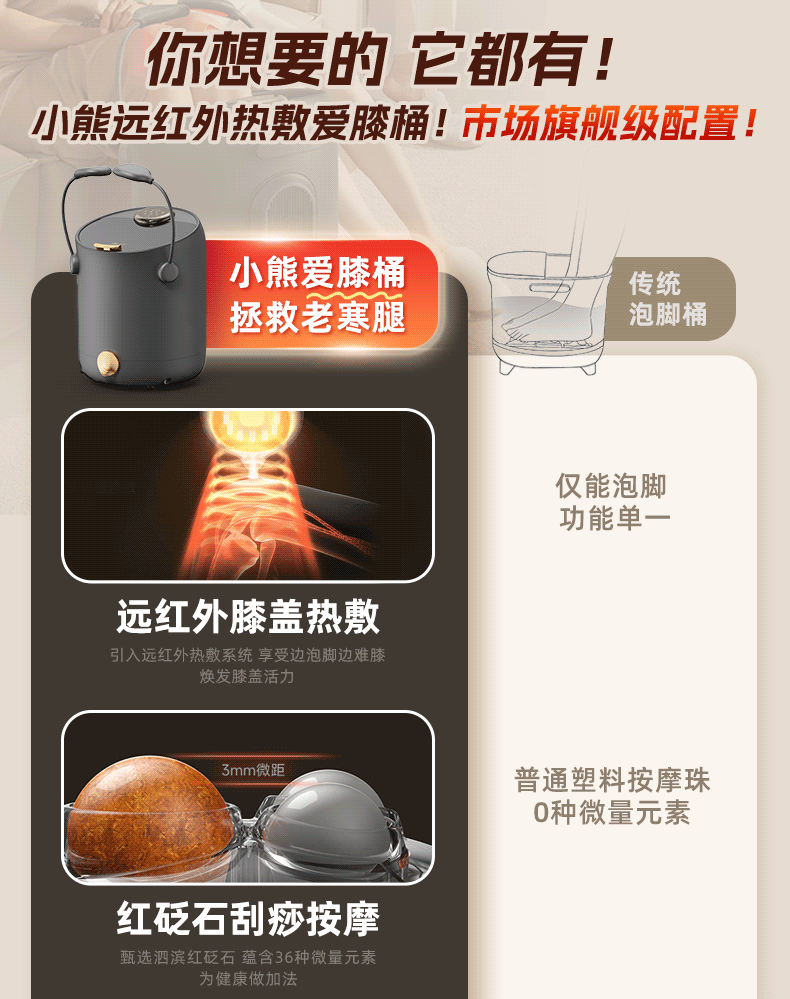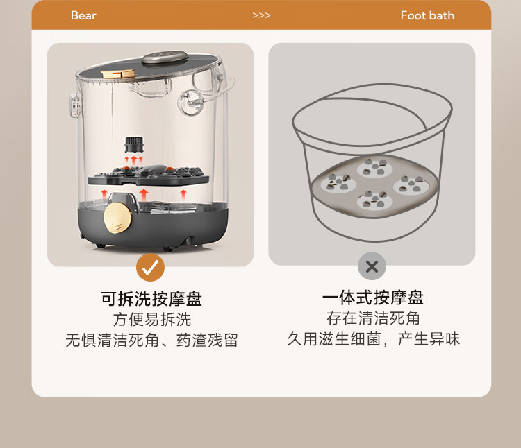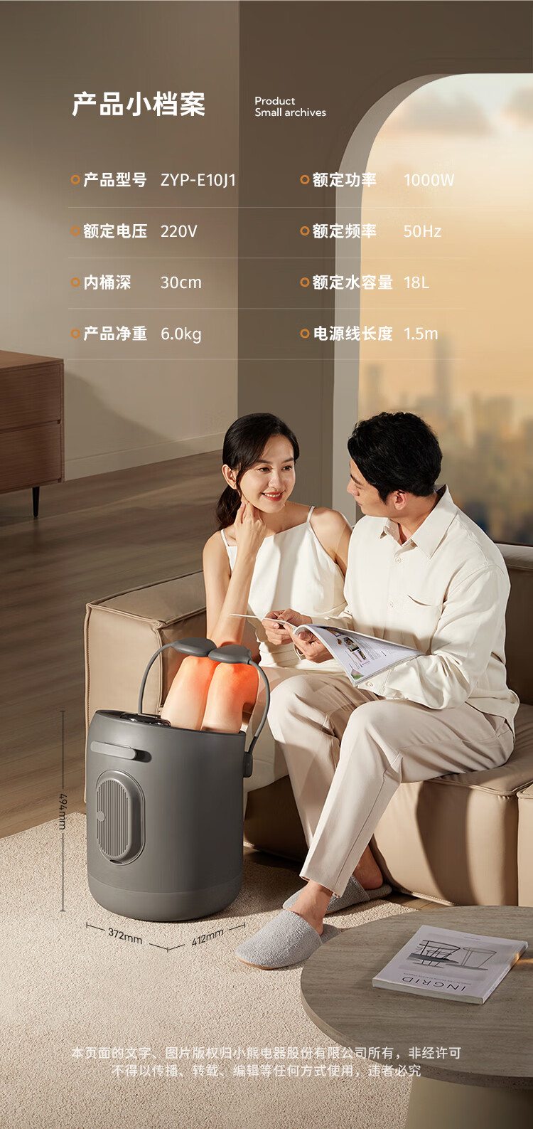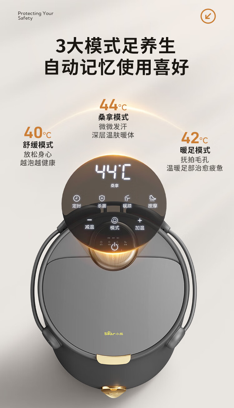 小熊(Bear)泡脚桶 全自动按摩恒温加热足浴盆 高深泡脚桶 智能杀菌泡脚盆过膝 爱膝桶 父亲节礼物ZYP-E10J1