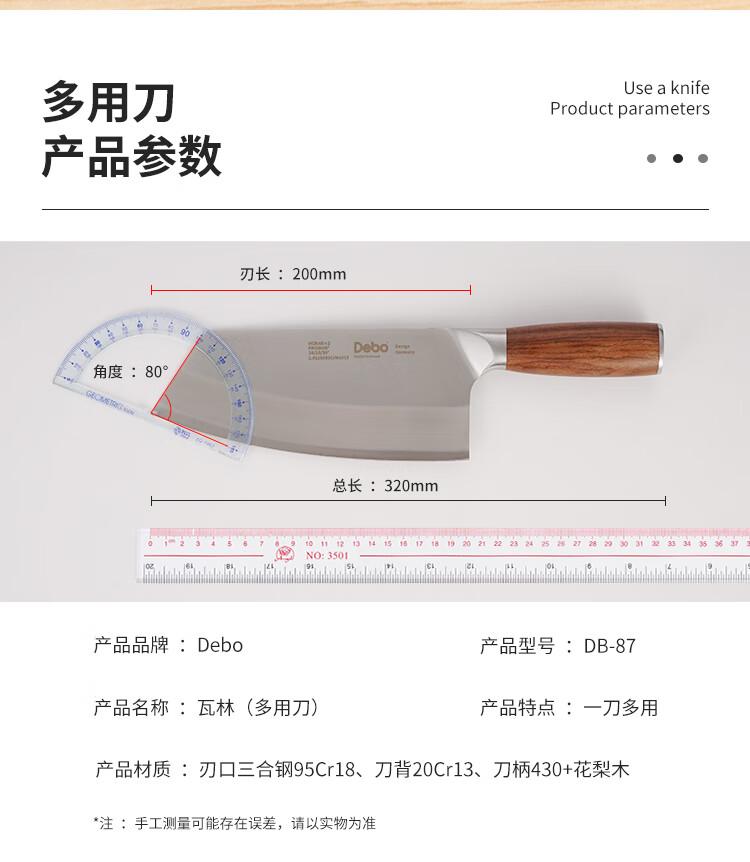Debo瓦林多用刀厨房切菜切片刀9铬刀超快锋利片刀DB-87