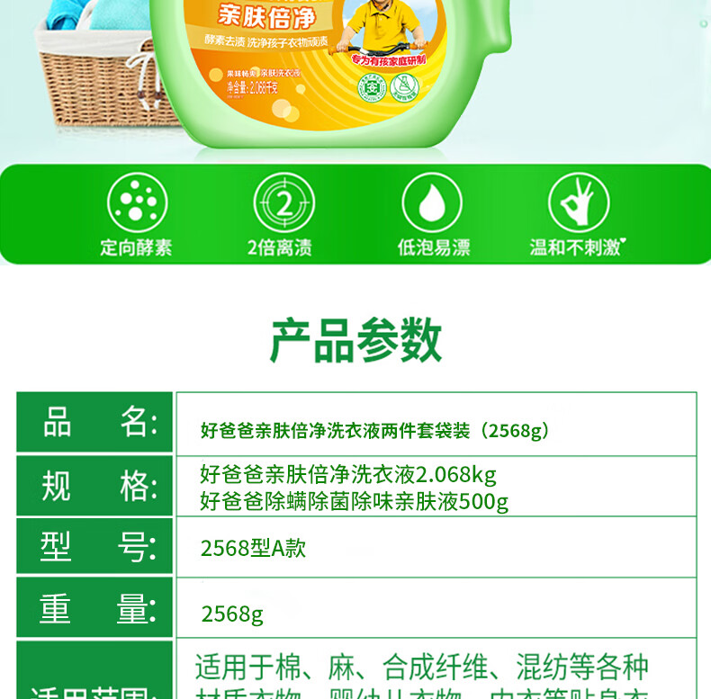 好爸爸(Kispa)亲肤倍净洗衣液两件套袋装2568g