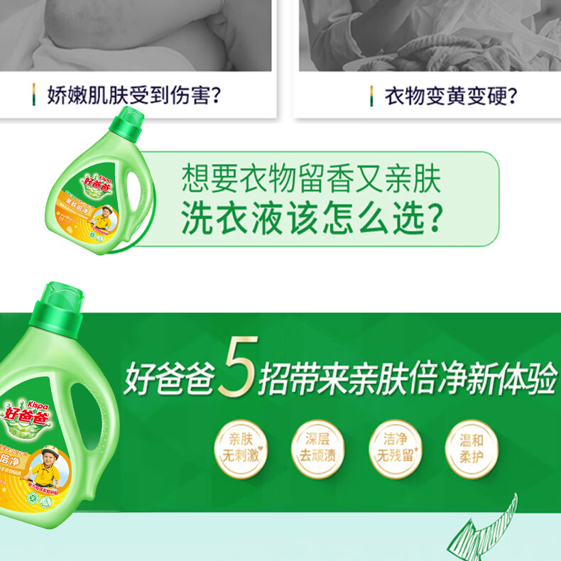 好爸爸(Kispa)亲肤倍净洗衣液四件套袋装4118g
